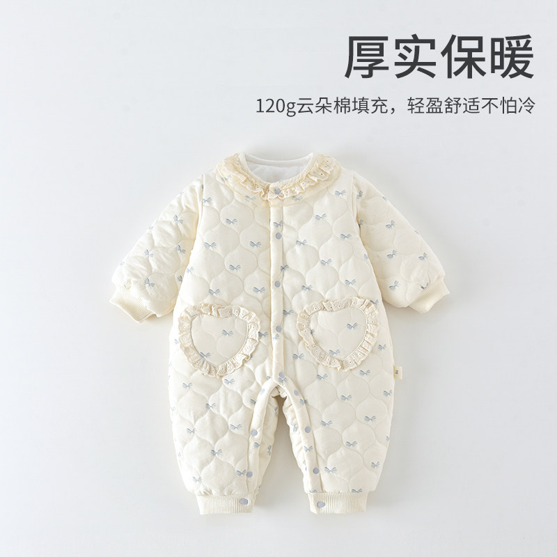 贝肽斯婴儿薄夹棉连体衣冬装外出新生幼儿宝宝衣服保暖空气棉睡衣