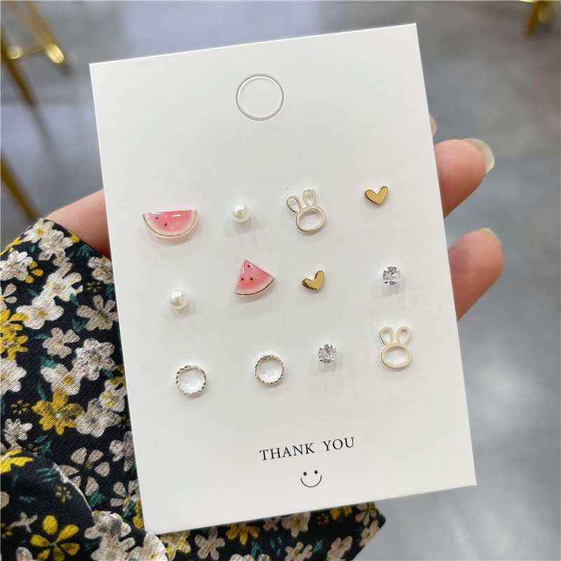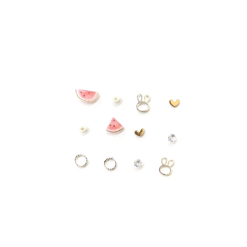 s925纯银针西瓜耳钉套装韩版ins风夏日小清新简约百搭耳环女镂空