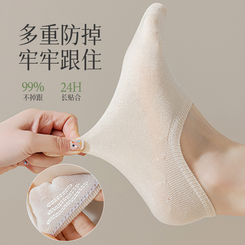 船袜女夏季薄款袜子潮女士短袜冰丝浅口袜防滑不掉跟纯棉透气