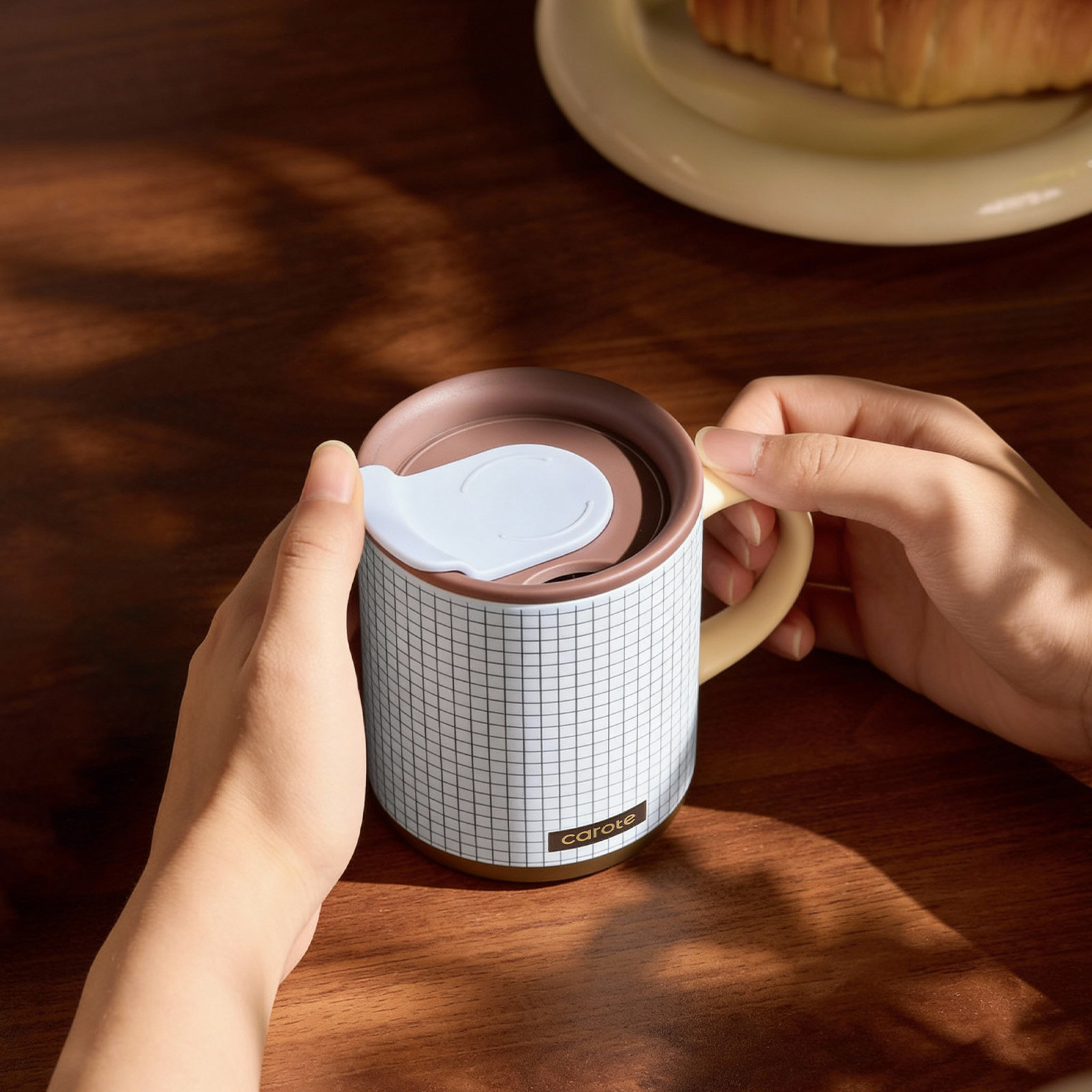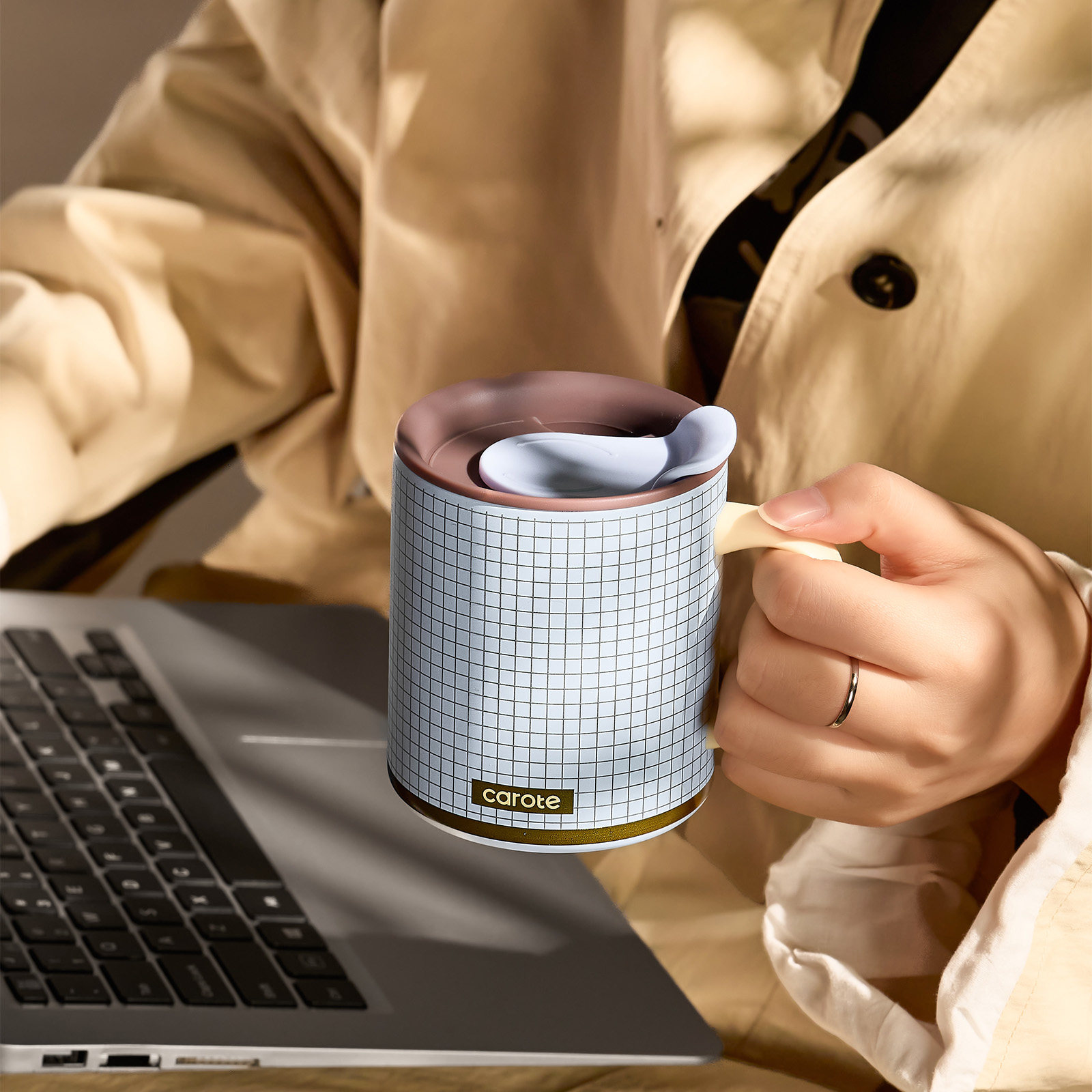卡罗特保温马克杯带盖水杯女家用316不锈钢办公室咖啡杯子带勺子