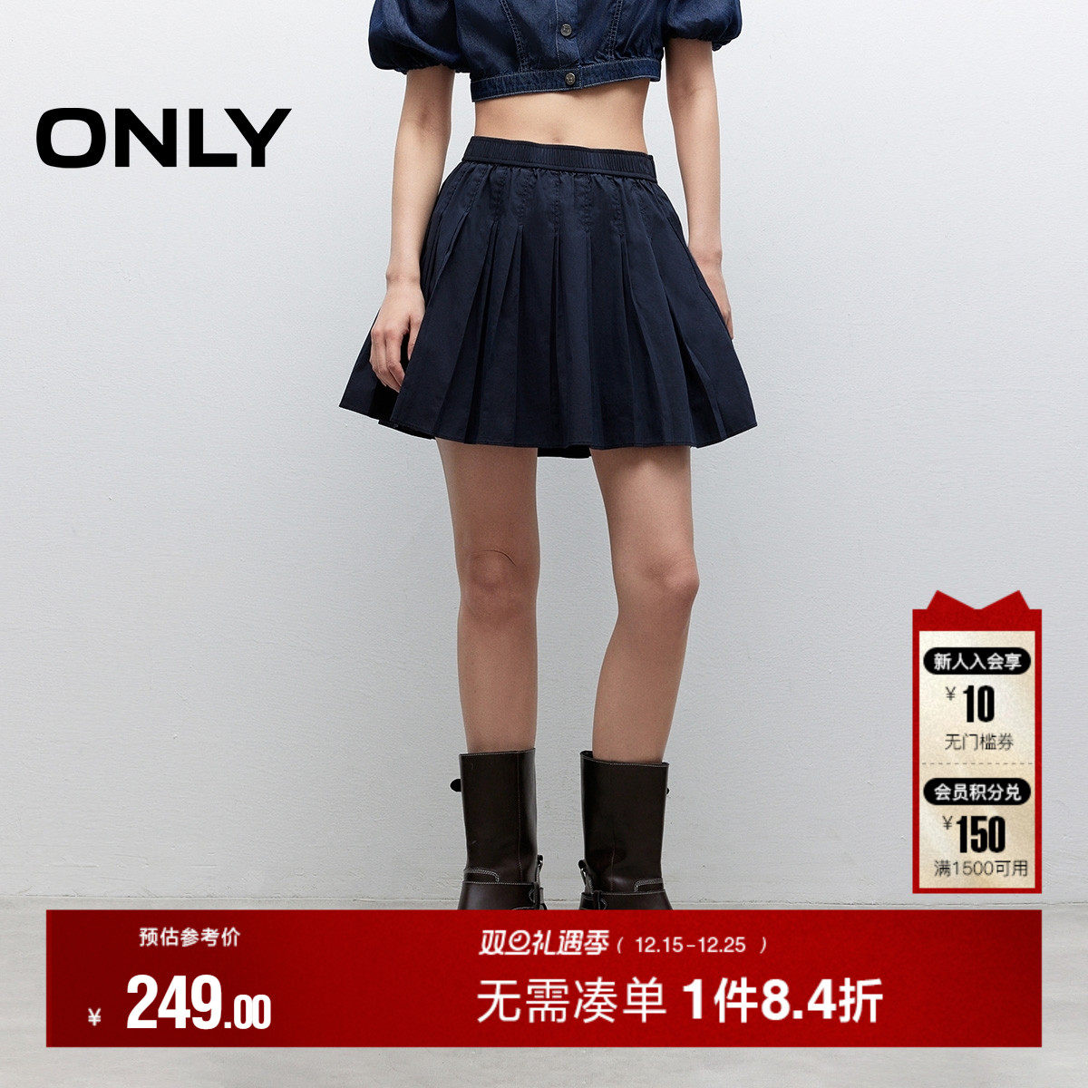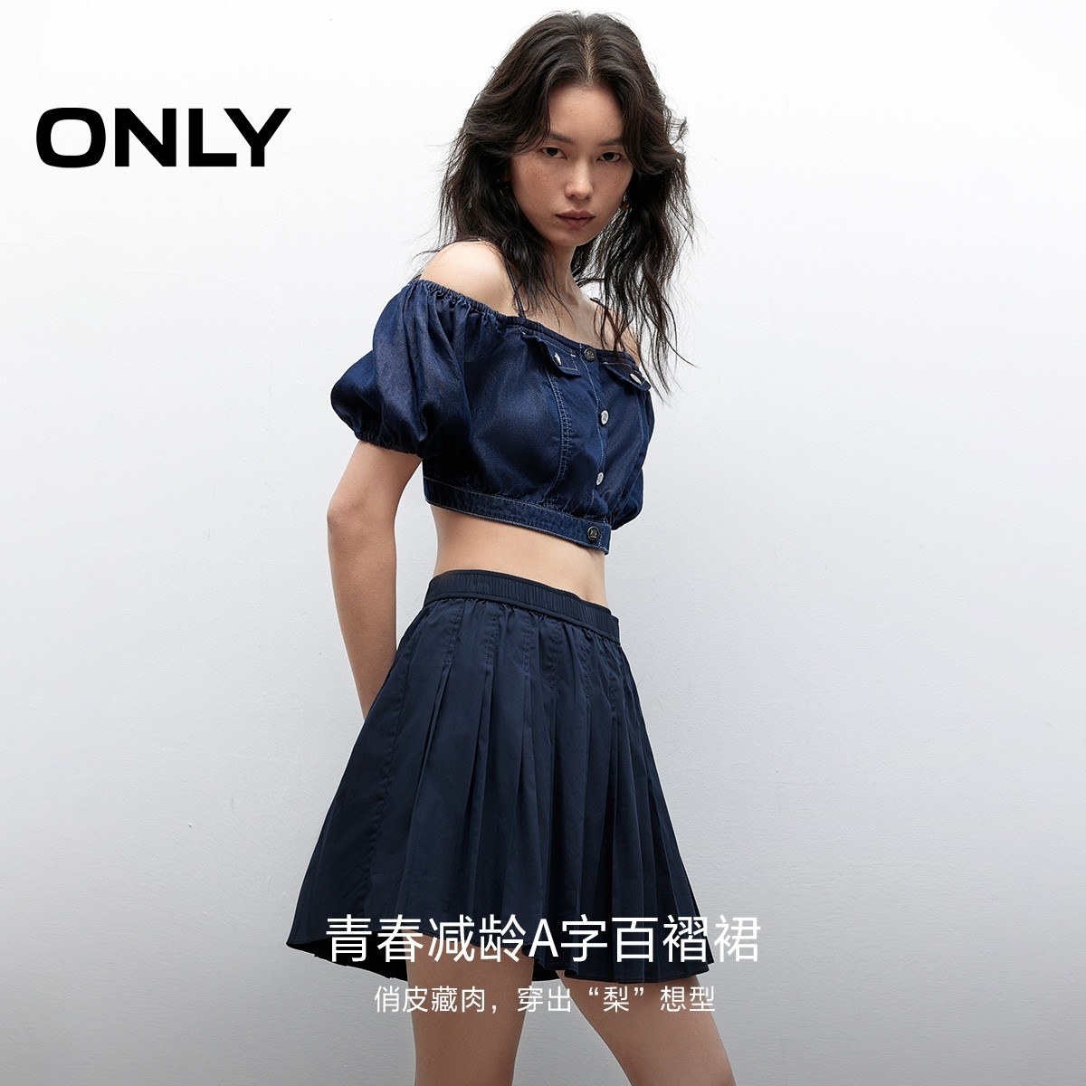 ONLY2025夏季新款松紧腰头显瘦减龄百搭A字短裙百褶裙半身裙女
