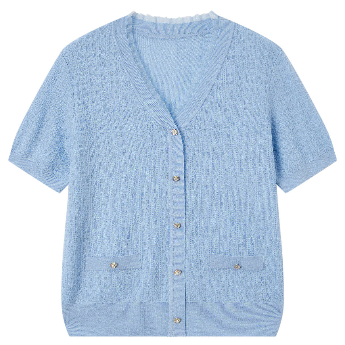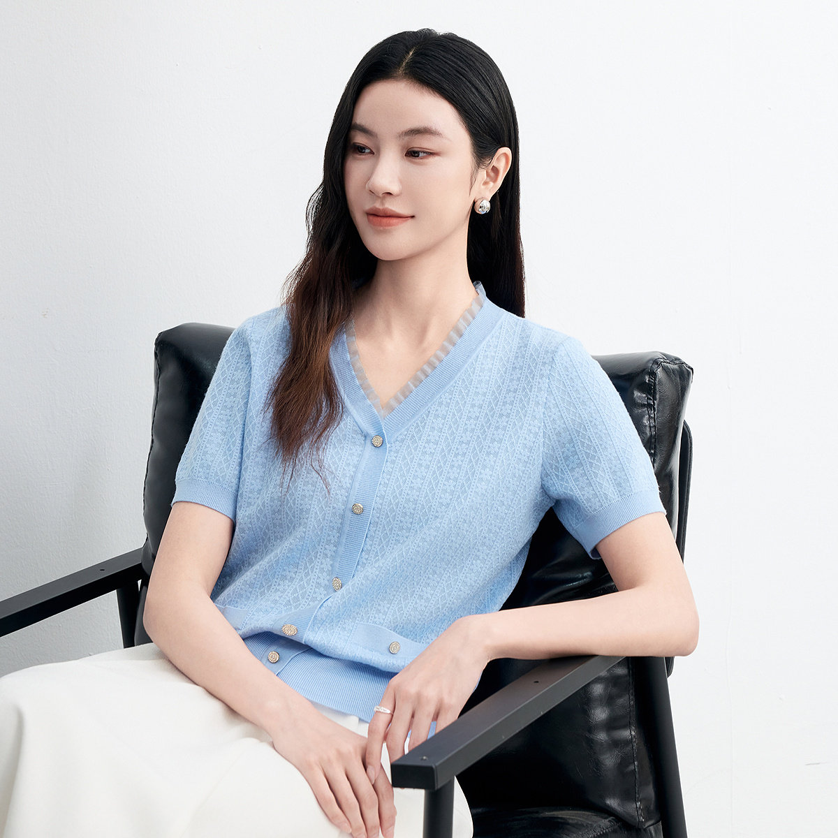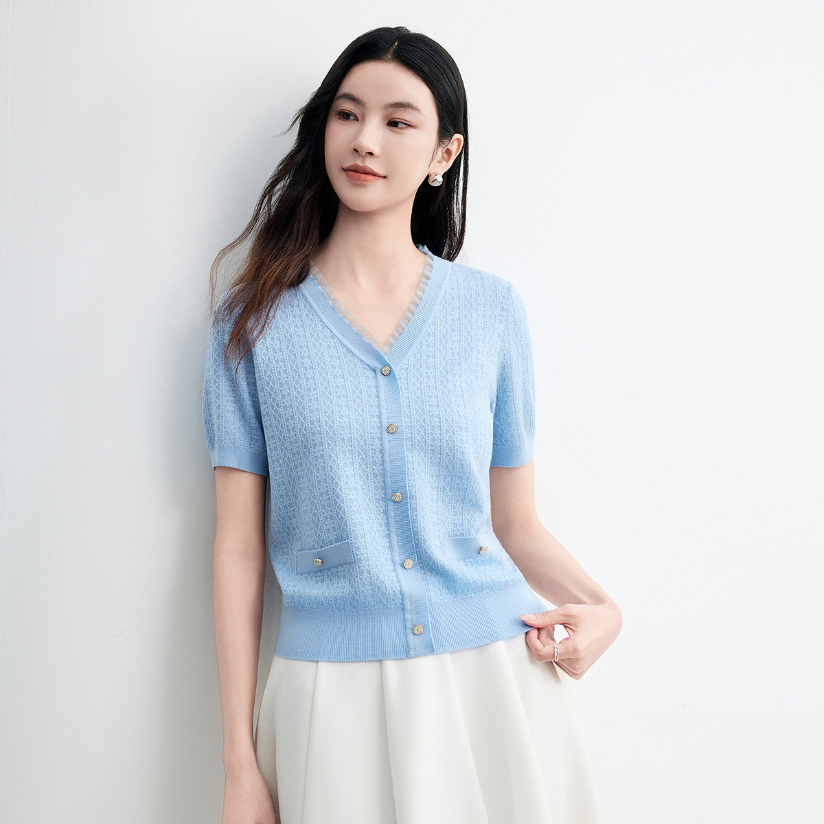 FINITY菲妮迪针织衫26年夏季新款简约休闲V领羊毛衫花边上衣女装