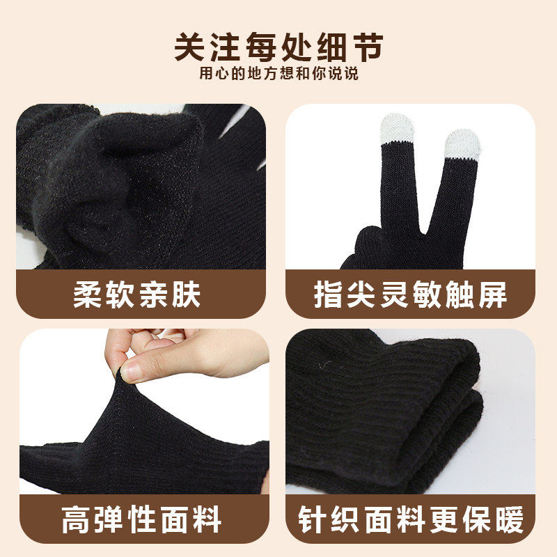 可触屏棉手套男士冬季保暖加绒加厚毛线针织骑行男女同款防寒手套