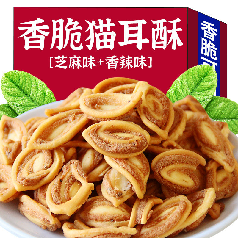 猫耳朵薄脆猫耳酥8090后小包装休闲膨化食品怀旧童年零食整箱批发