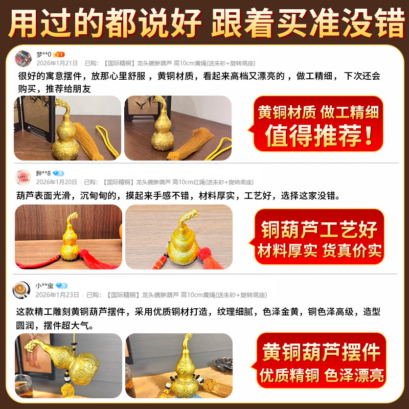 黄铜貔貅龙头铜葫芦摆件开头挂件空心开盖百福胡芦办公室客厅招财