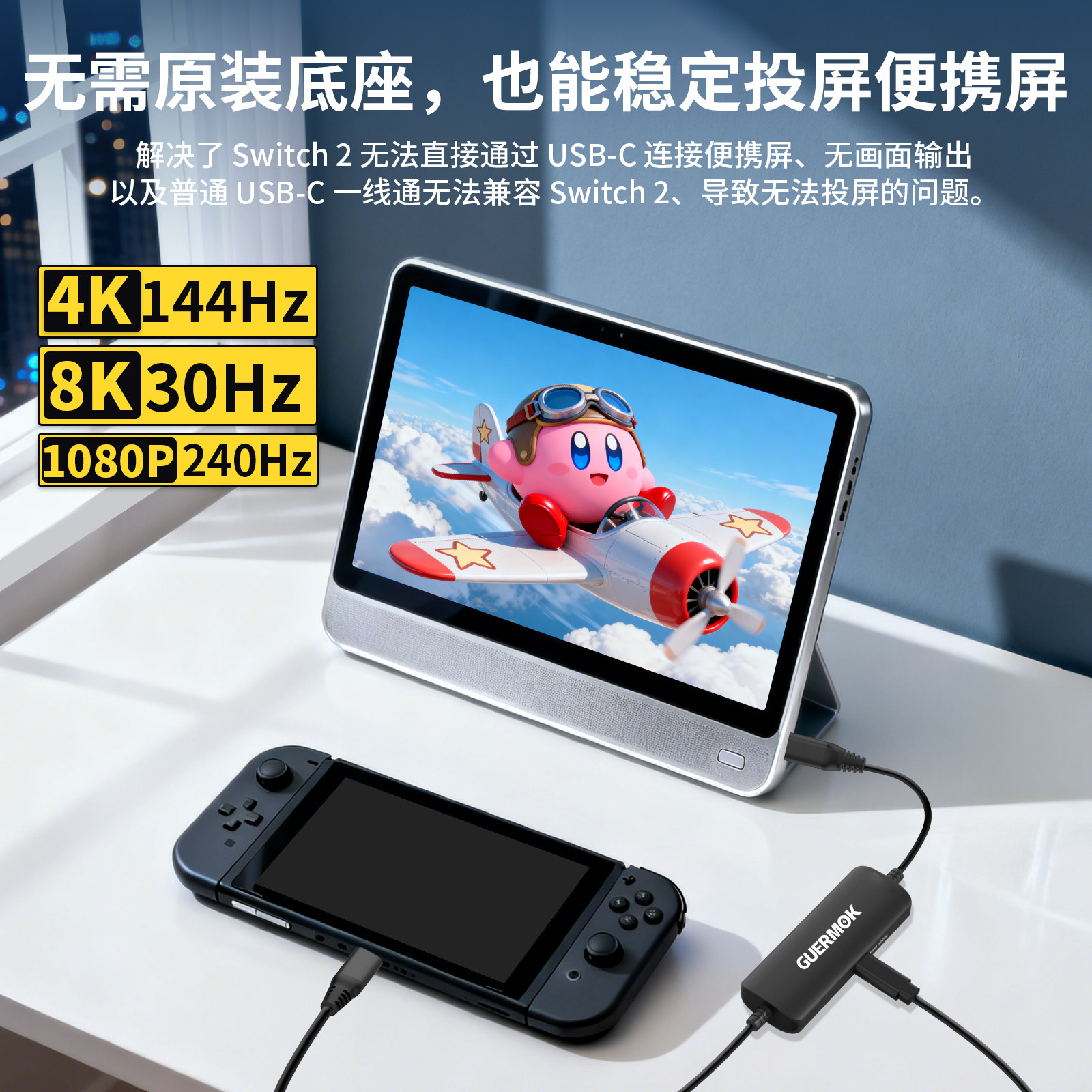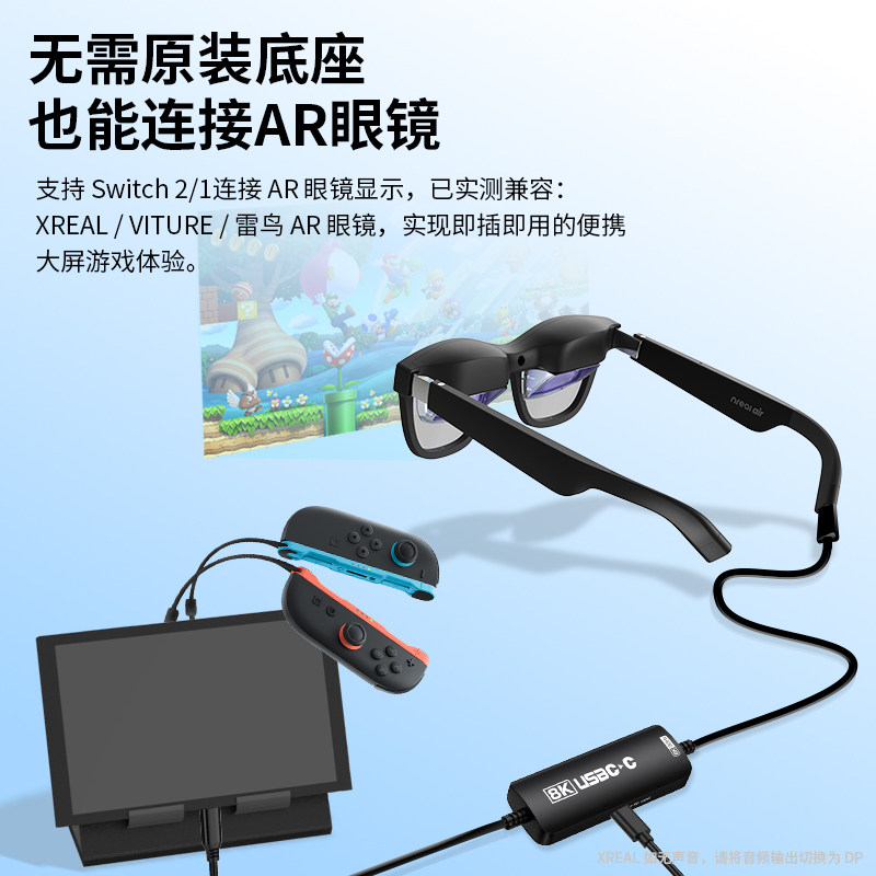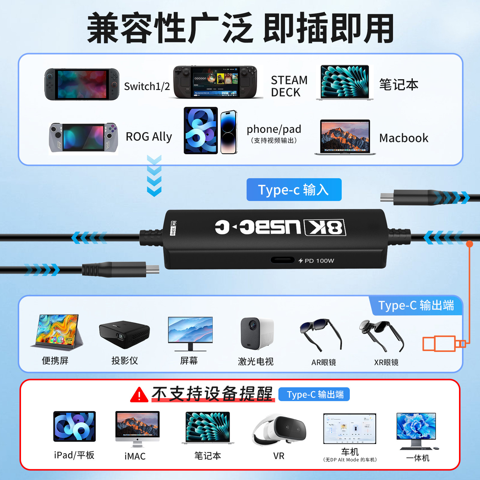 Switch2一线通免底座CC投屏线8K快充直连便携屏/显示器/AR眼镜