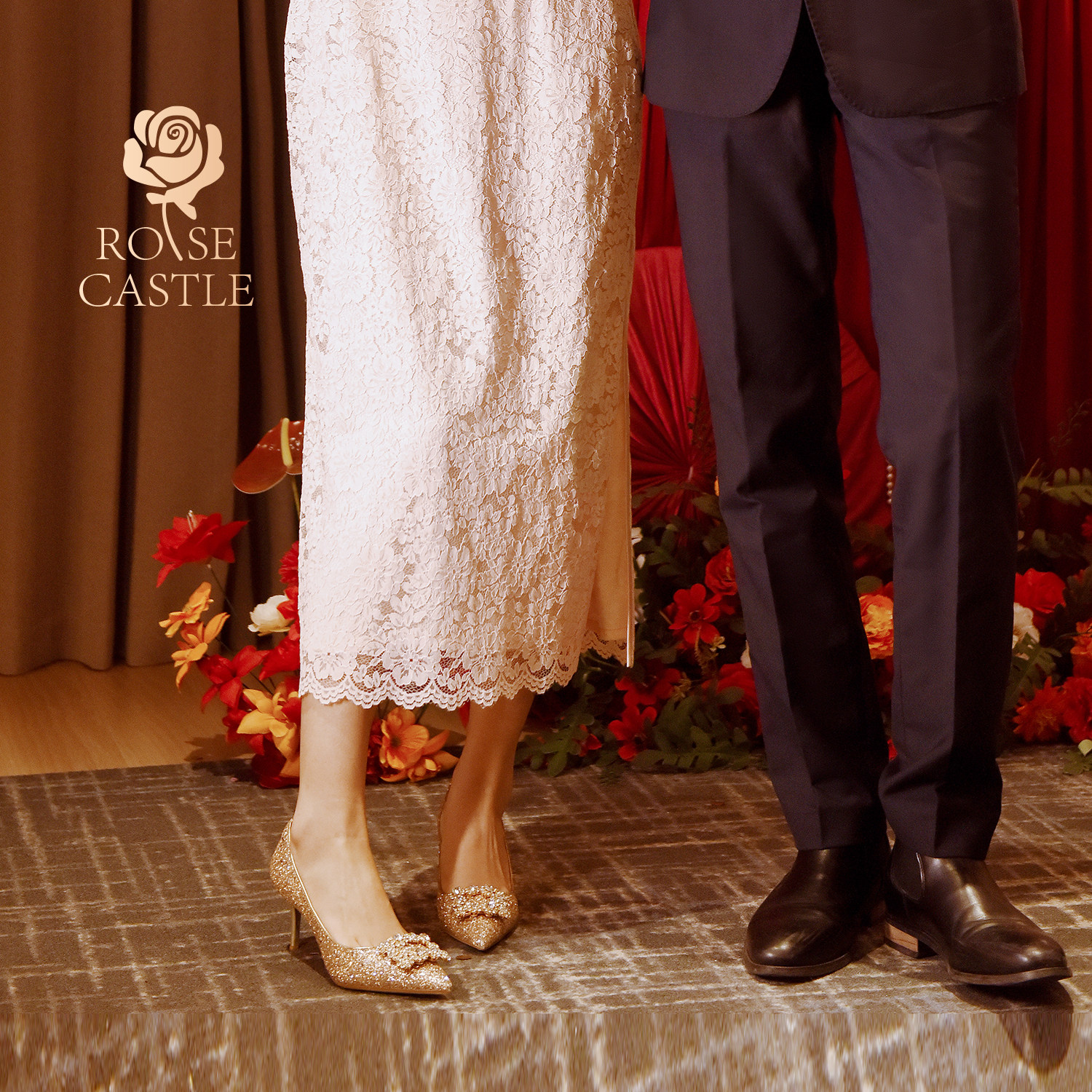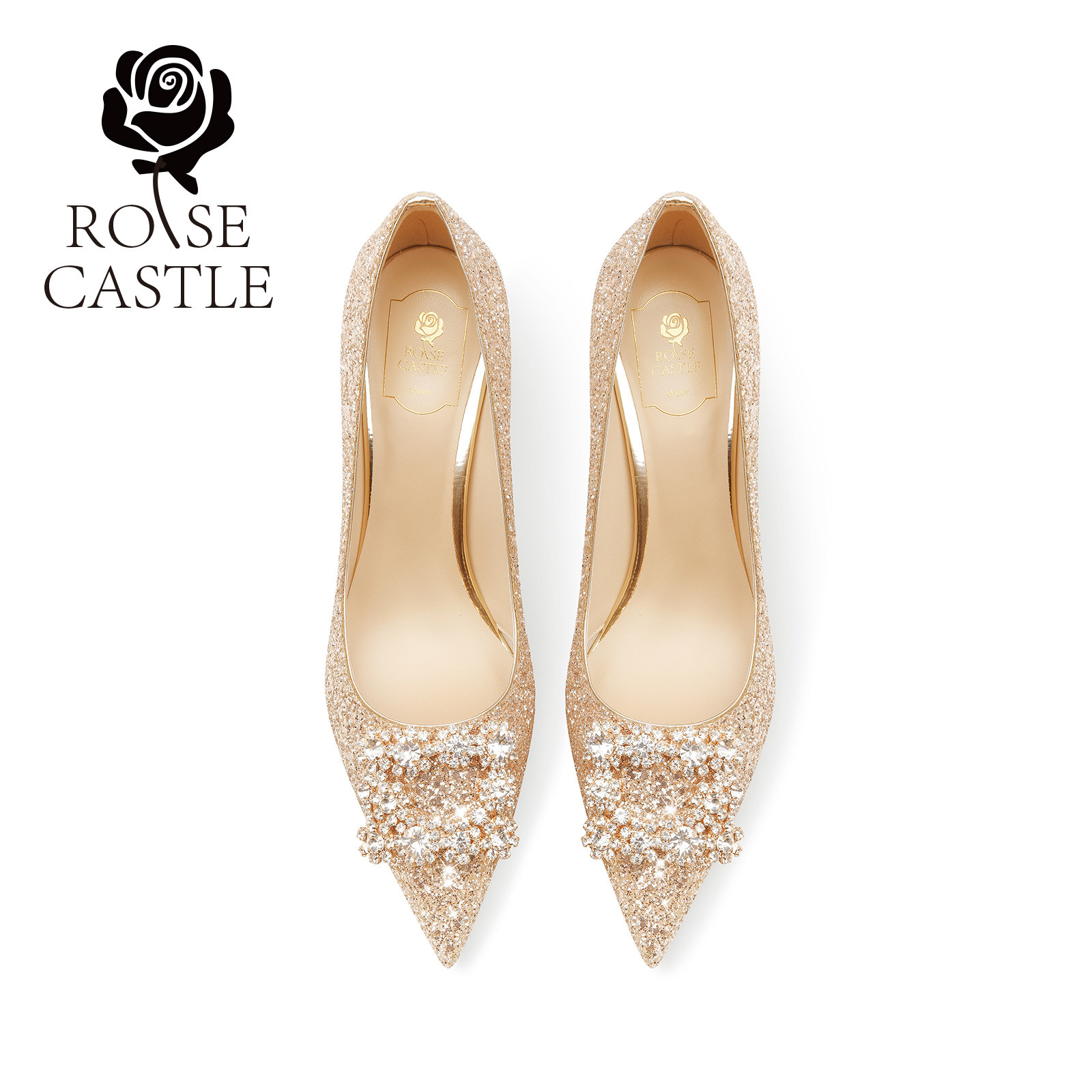rosecastle金色婚鞋女新娘敬酒鞋绝美不累脚方扣高跟鞋新款旗袍鞋