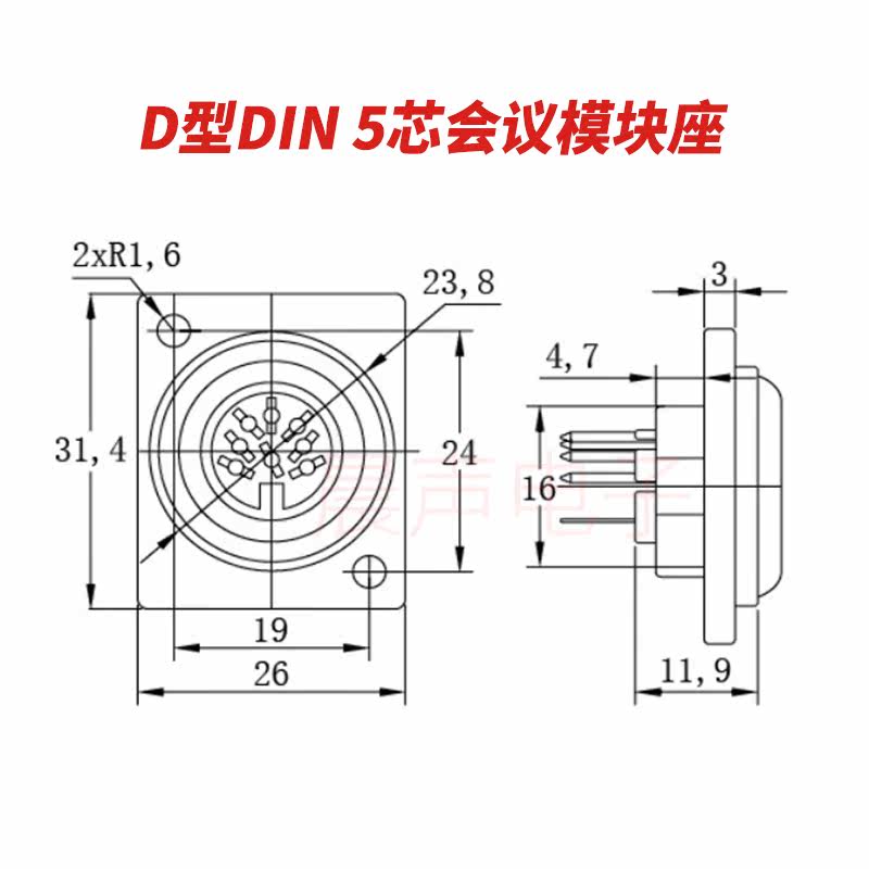D型迷你5芯卡农母DIN插座KTV点歌机路由器交换机MIDI键盘会议话筒