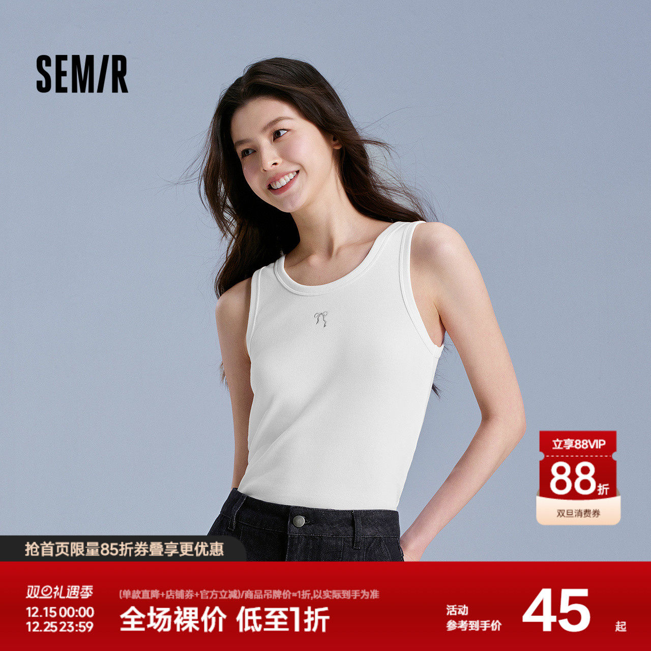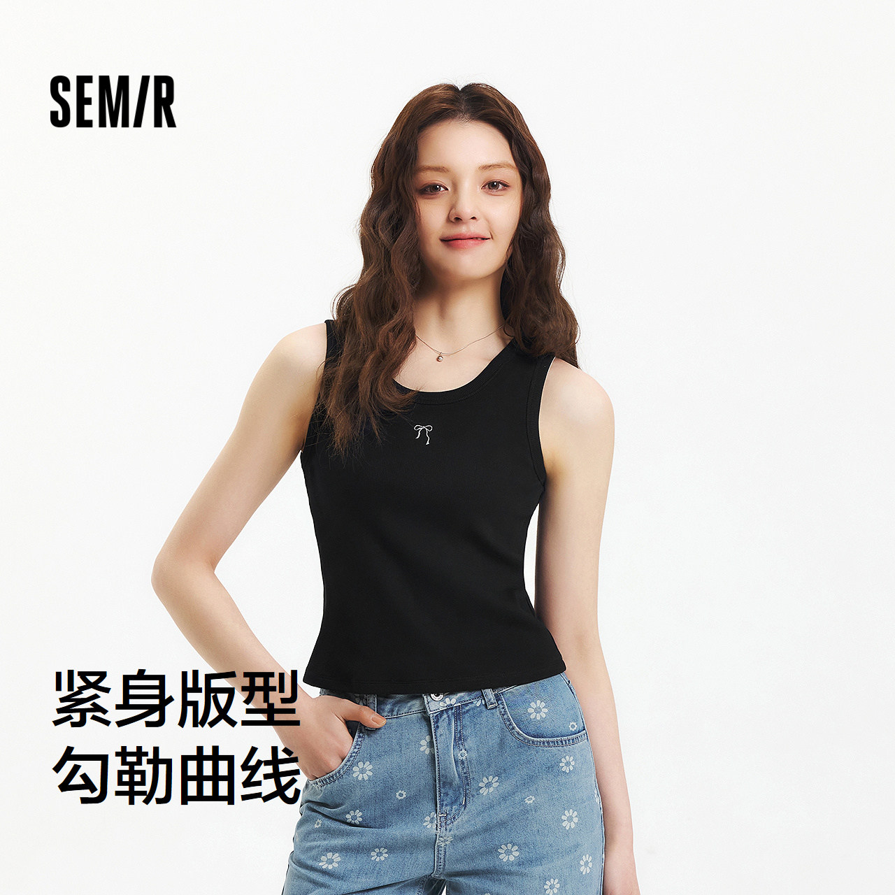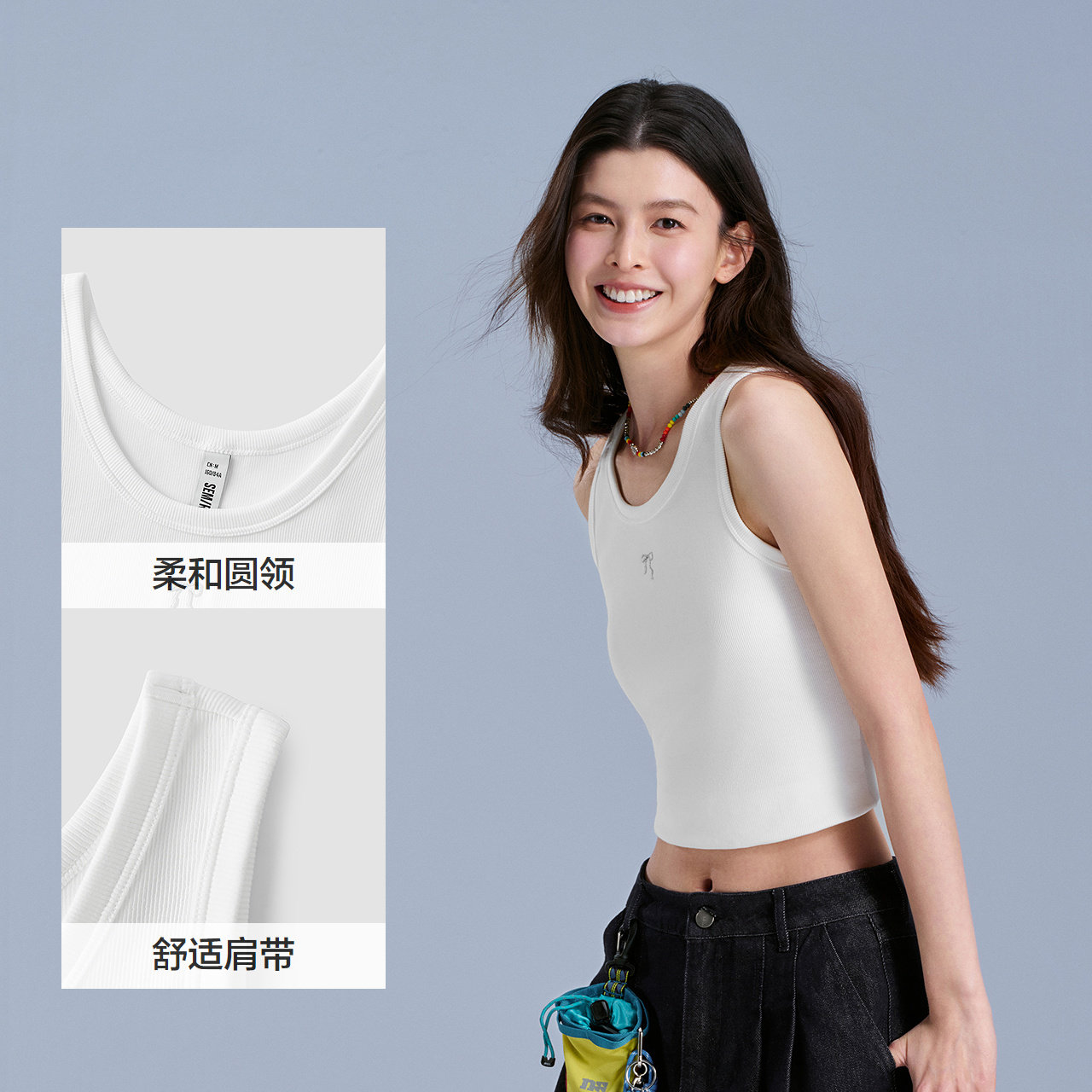 森马背心女短款蝴蝶结温柔夏季2025新款时尚紧身绣花圆领上衣百搭