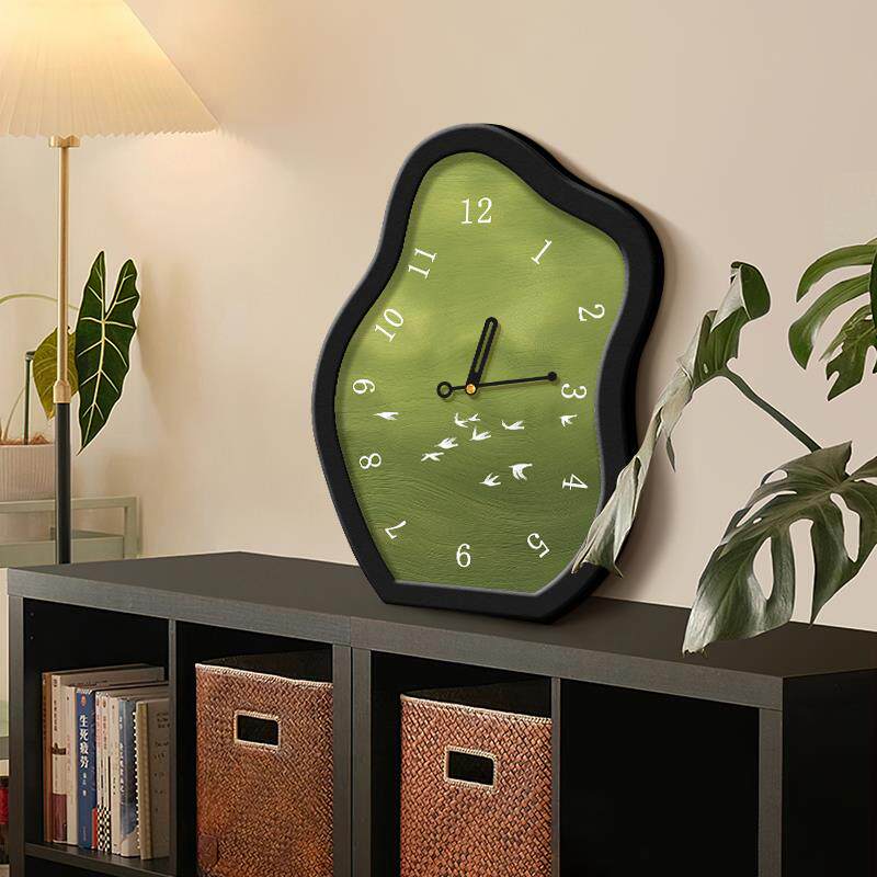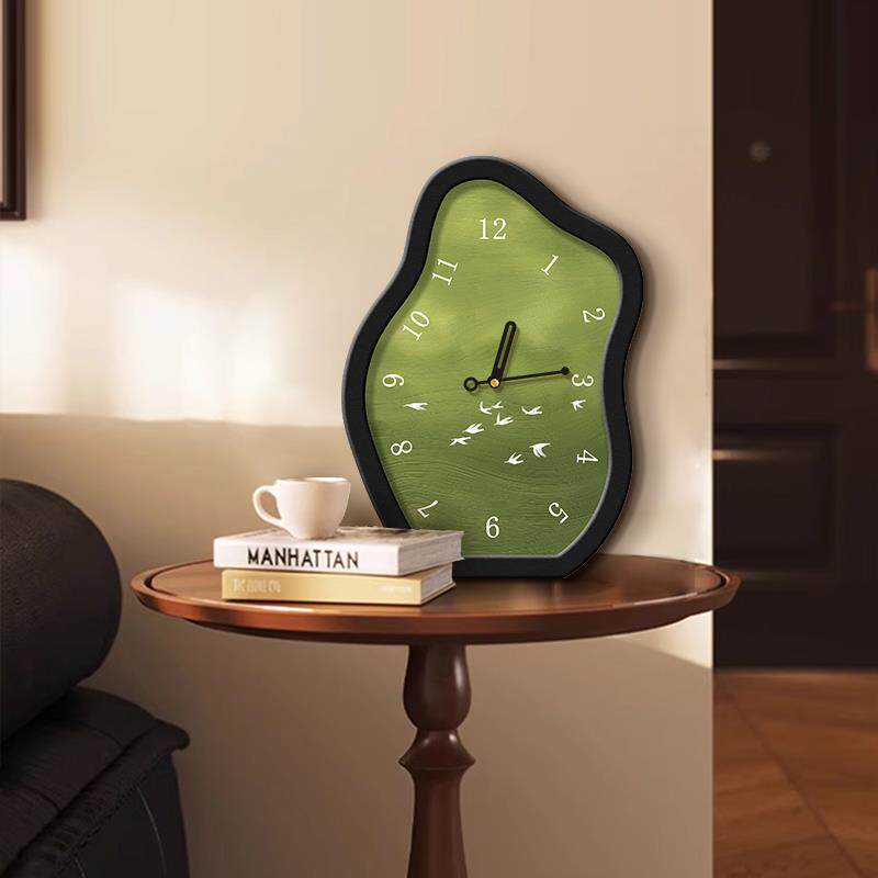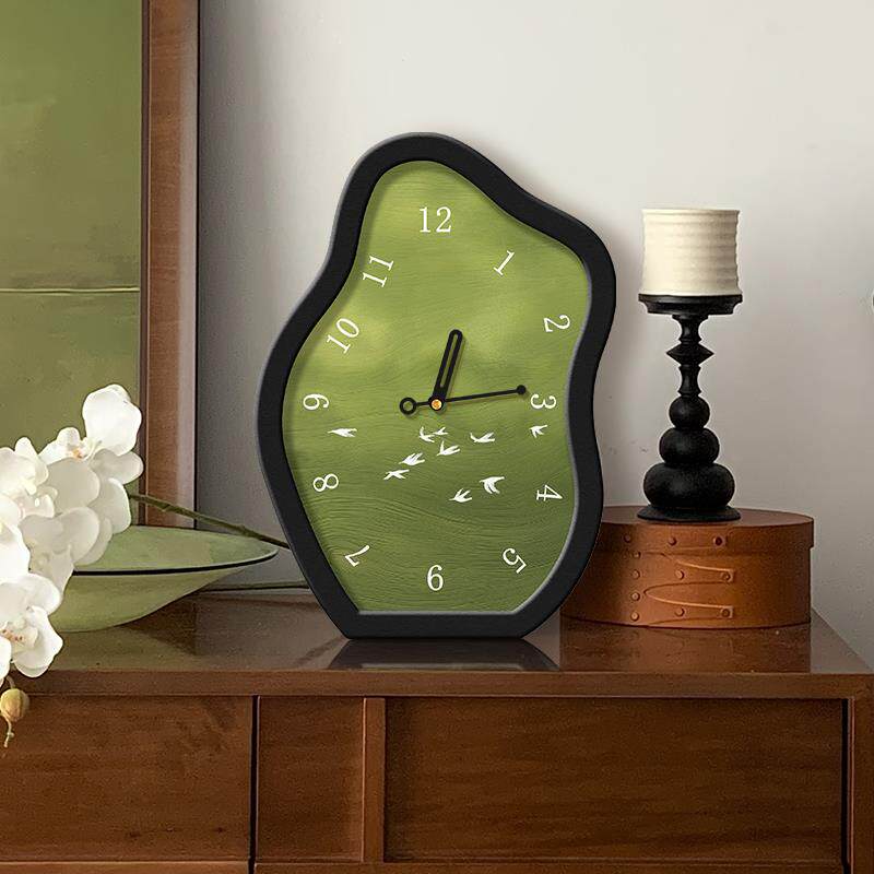 中古风绿色飞鸟客厅桌面摆件时钟电视柜摆台钟家用静音卧室钟表画