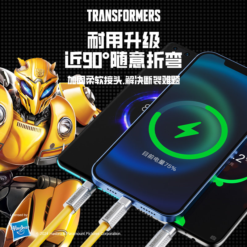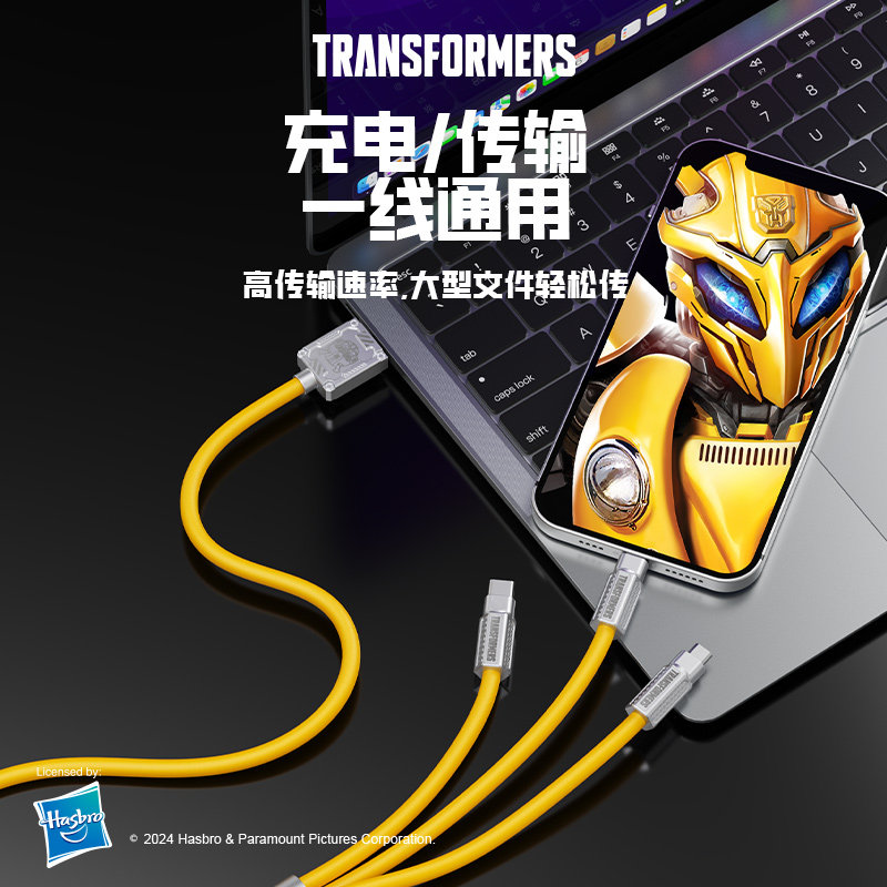 变形金刚数据线三合一充电线一拖三手机快充充电器适用苹果笔记本电脑iphoneProMax15/14小米Typec
