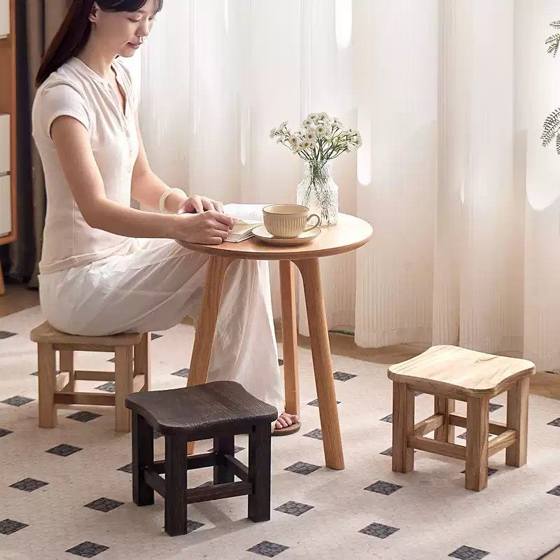 日式实木凳子家用矮凳换鞋客厅卧室时尚简约复古椅子桐木舞蹈方凳