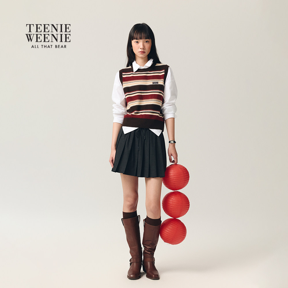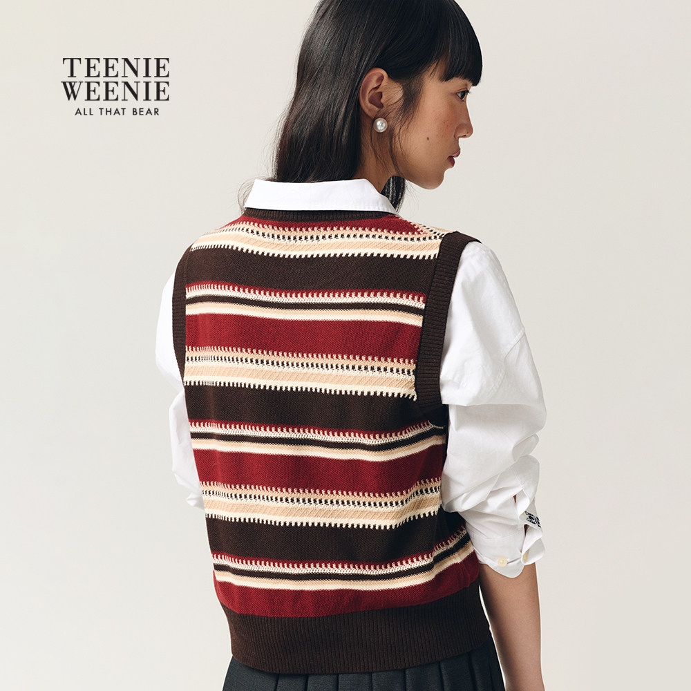 TeenieWeenie小熊女装毛针织衫26春新款肌理感不规则条纹圆领背心