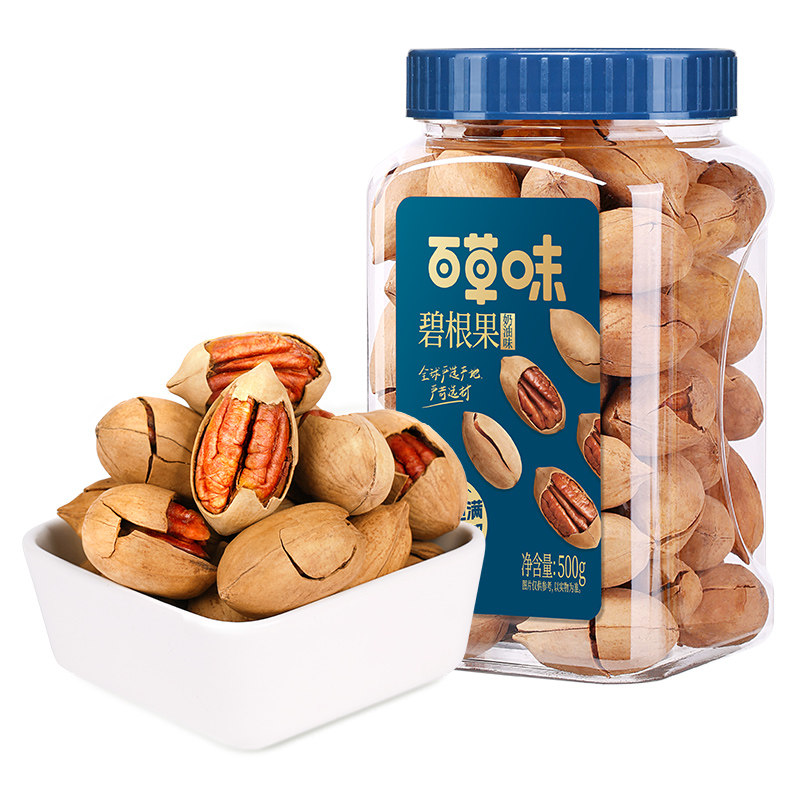 百草味碧根果500g罐装干果仁健康坚果小零食长寿果休闲奶油味炒货