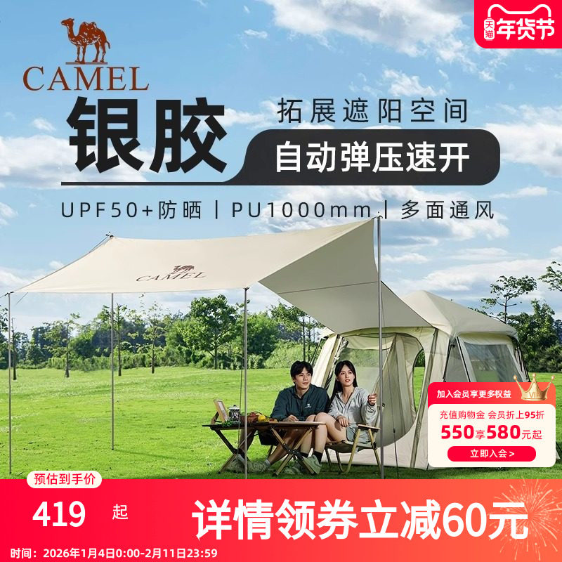 骆驼帐篷户外露营野营过夜便携式折叠全自动全套装备加厚黑胶新款