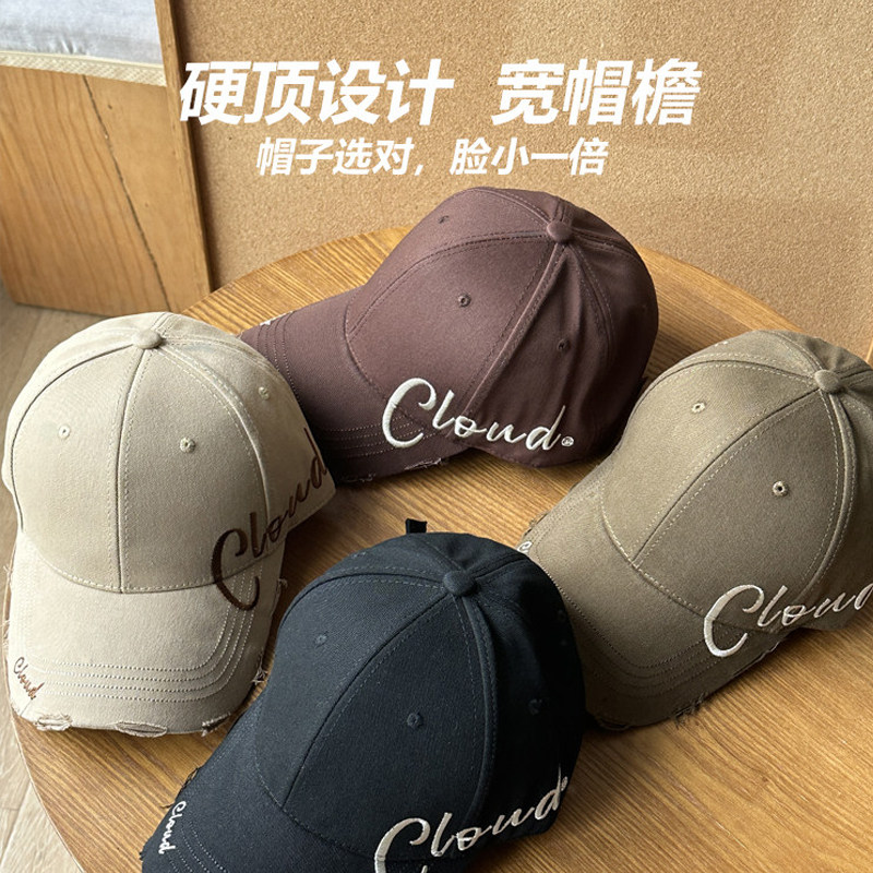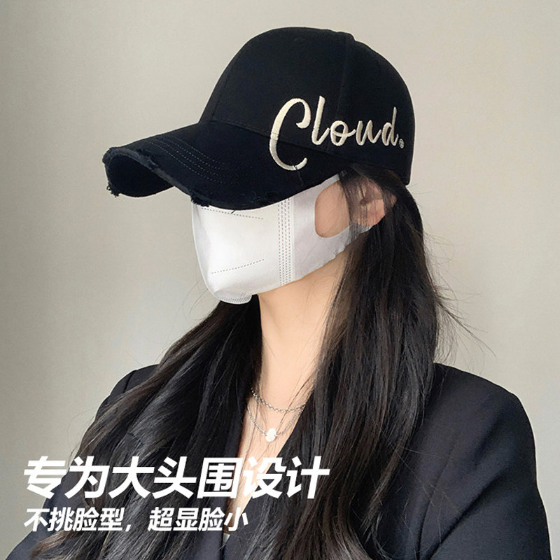 美式复古字母灰色棒球帽女高级感宽檐大头围显脸小百搭鸭舌帽子男