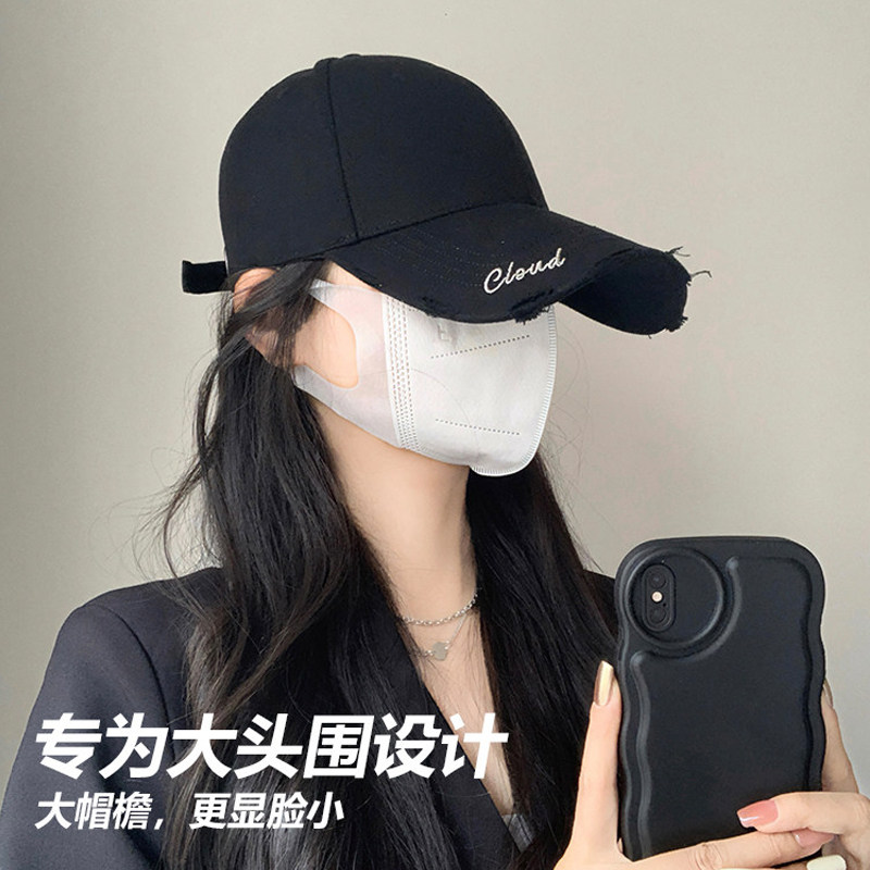黑色硬顶鸭舌帽女夏季字母大头围帽子男棒球帽潮防晒遮阳帽显脸小
