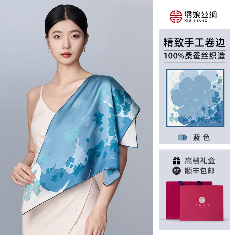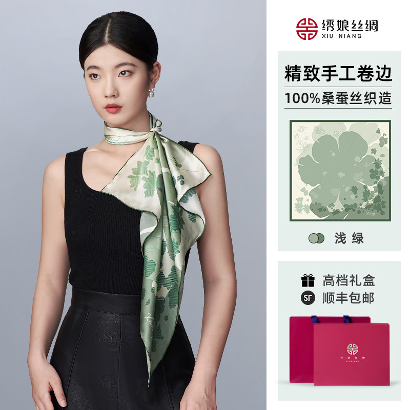 绣娘丝绸真丝丝巾新款桑蚕丝方巾披肩女外搭高级妈妈女友生日礼物