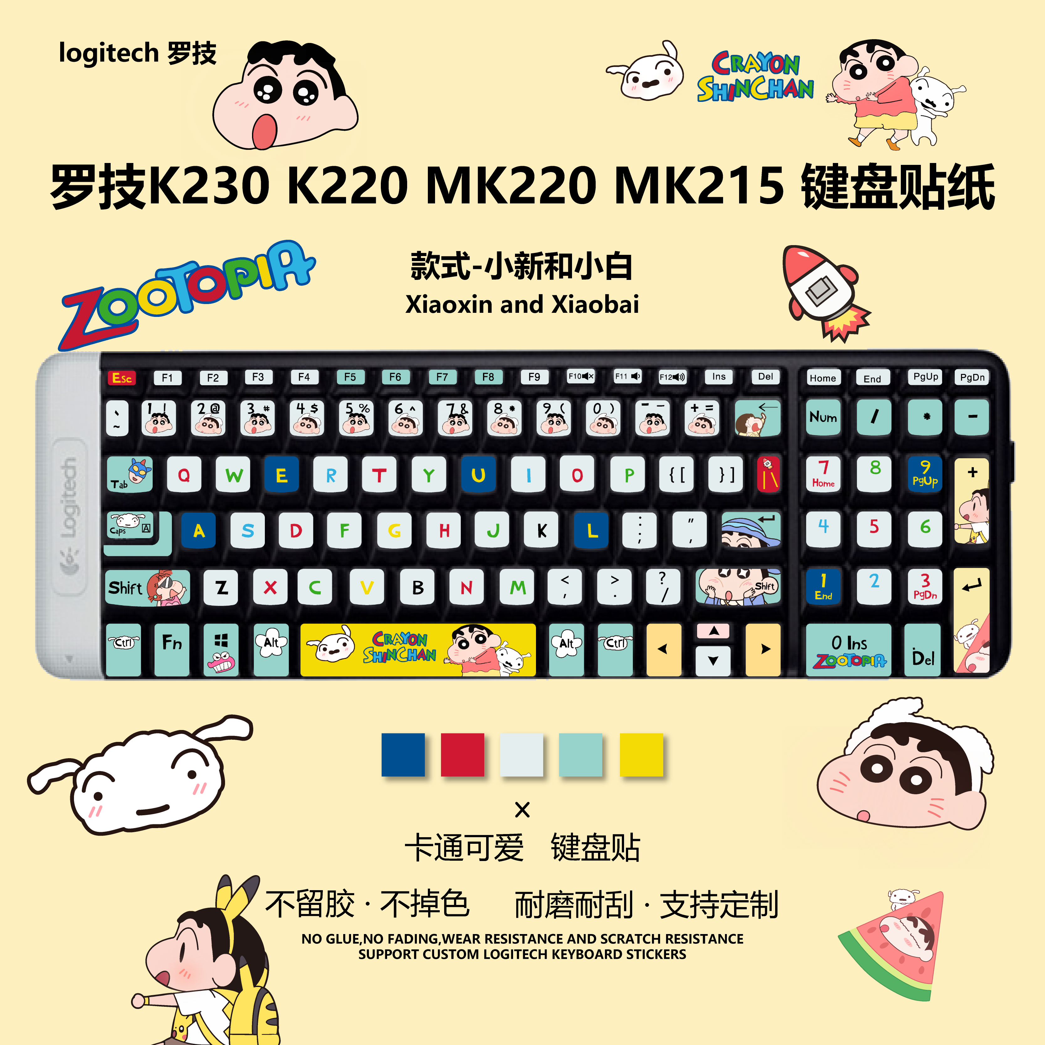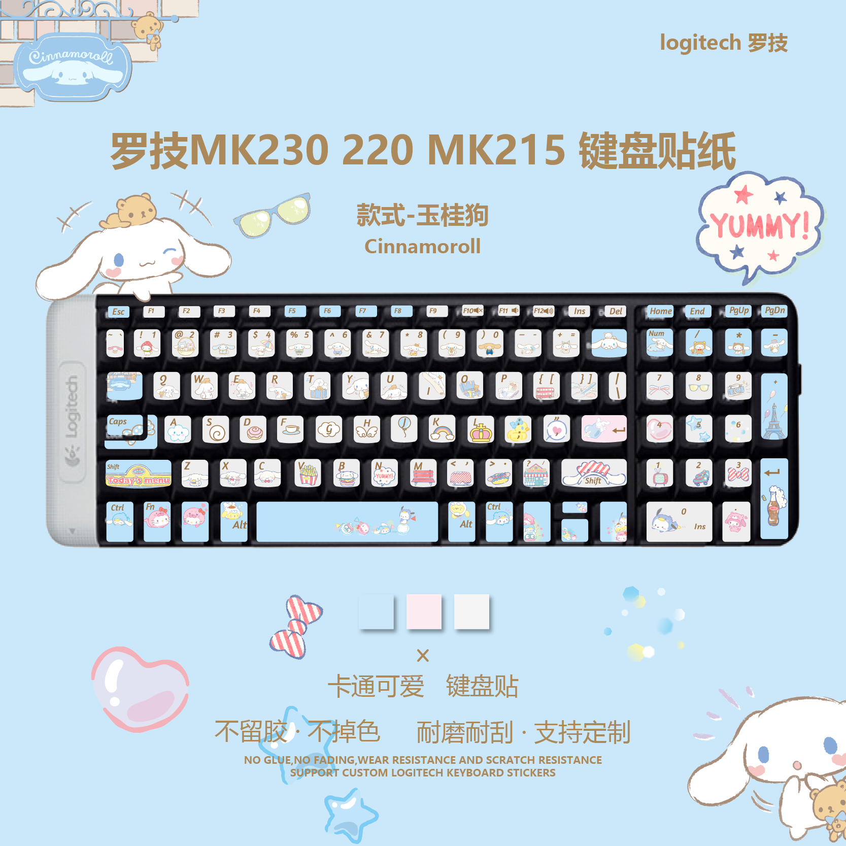 loopy适用于罗技MK220键盘贴纸台式机贴纸台式按键贴字母贴纸耐磨
