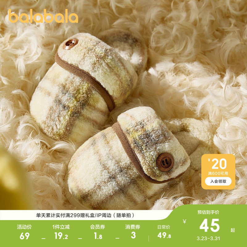 巴拉巴拉儿童棉拖鞋男童女童冬季宝宝室内加绒保暖家居鞋休闲百搭