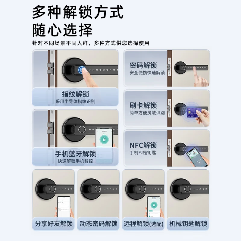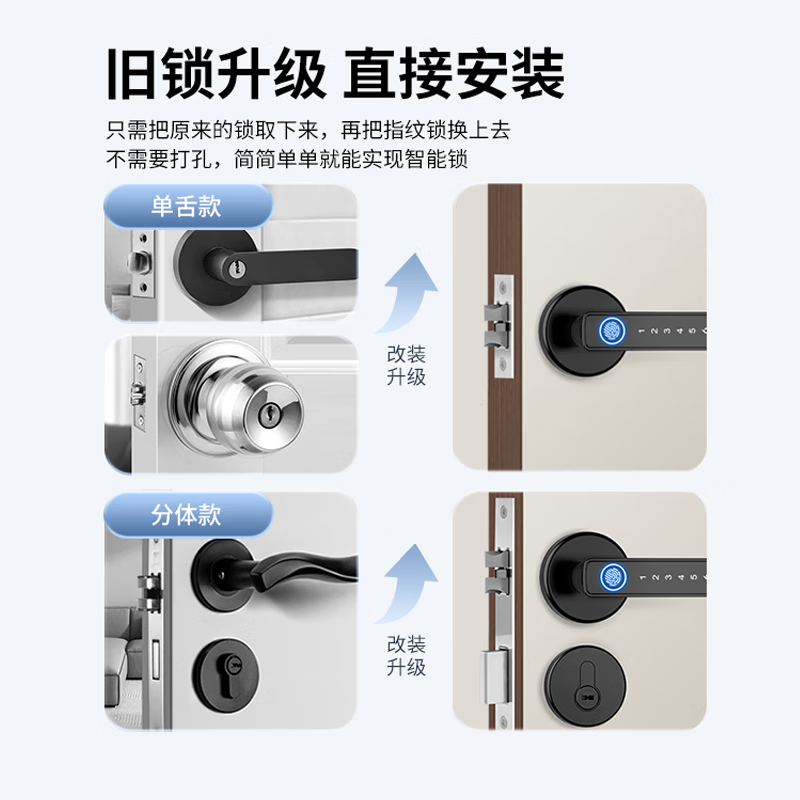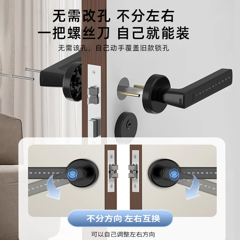 指纹锁办公室密码门锁家用卧室房间把手分体智能电子锁木门室内