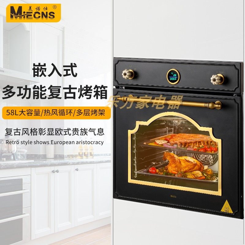 美诺仕古典白色嵌入式电烤箱内嵌式烤箱欧式厨房白色橱柜电烤箱