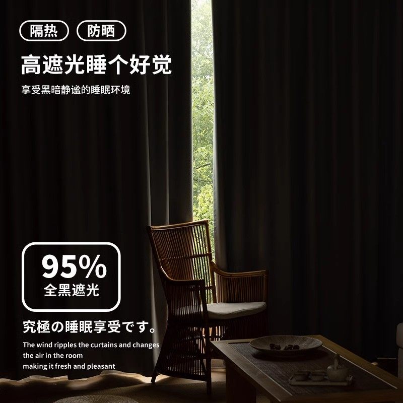 卧室窗帘遮光2025新款客厅雪尼尔高级感挂钩式遮阳布绍兴柯桥飘窗