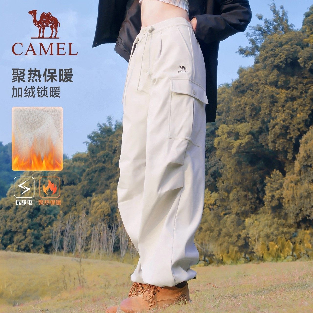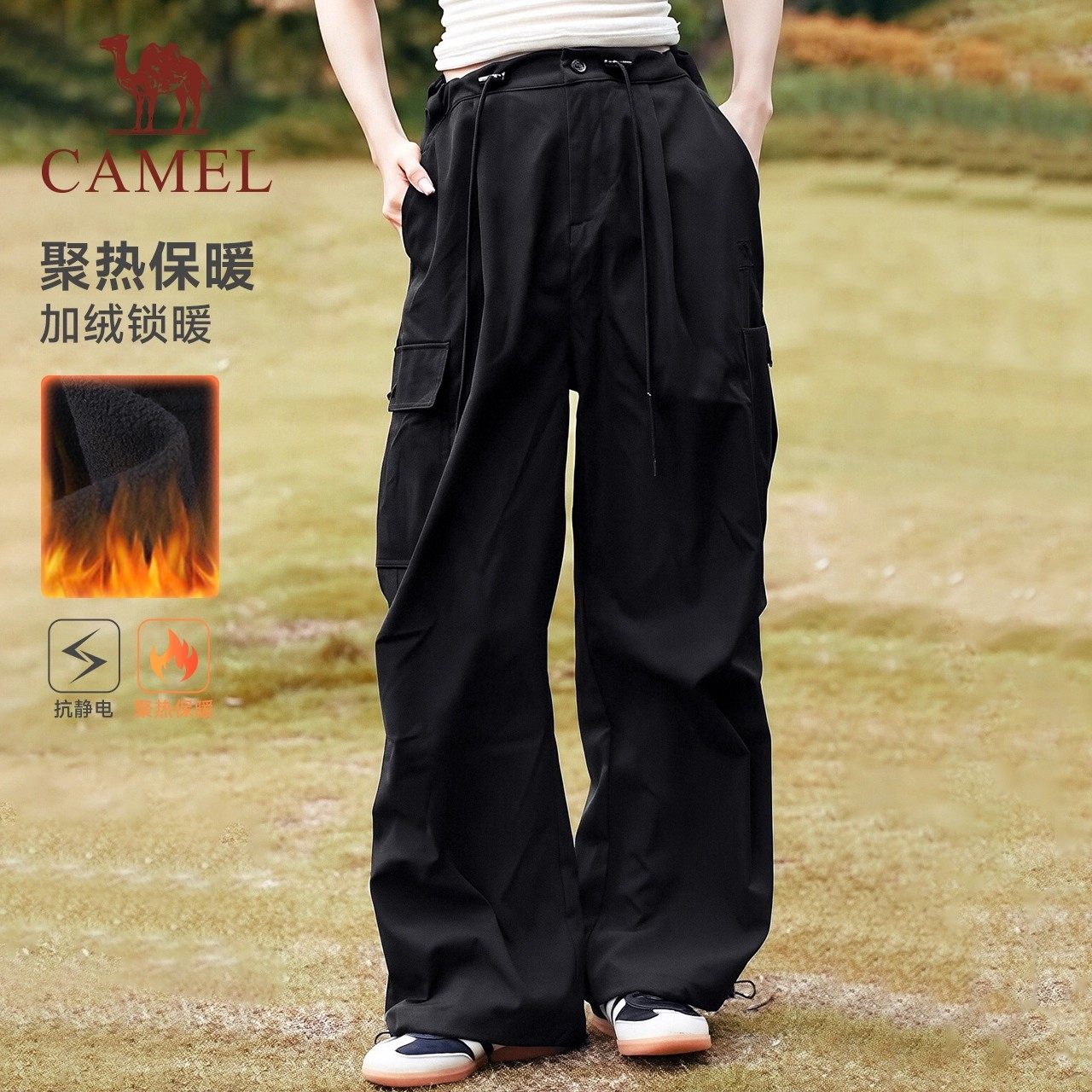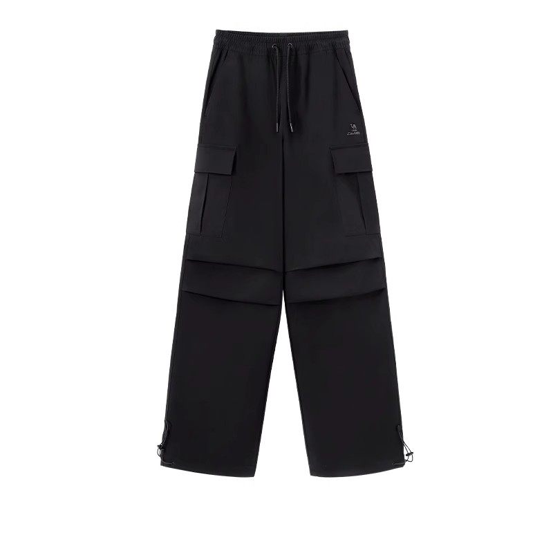 骆驼伞兵裤女工装裤小个子黑色高腰垂感美式束脚阔腿防水运动长裤