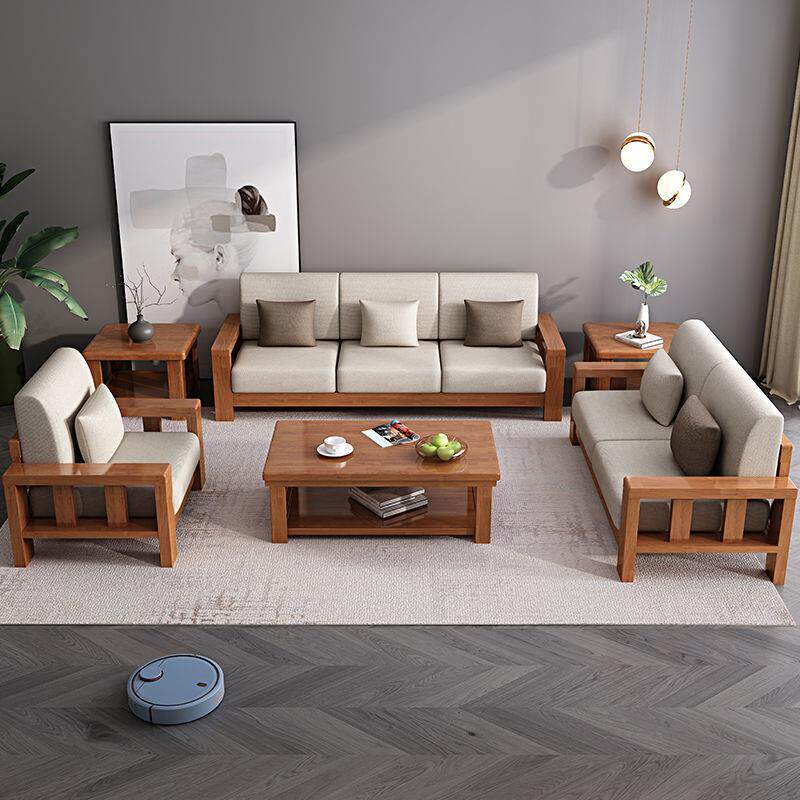 中式实木现代简约沙发组合出租房沙发小户型客厅贵妃转角布艺沙发