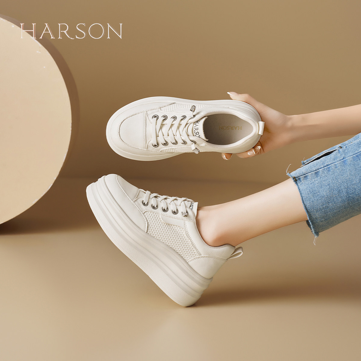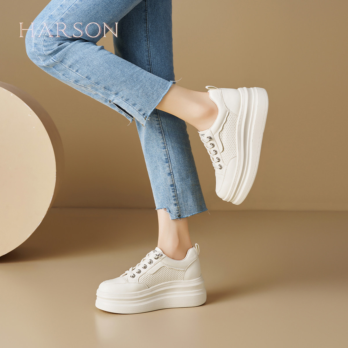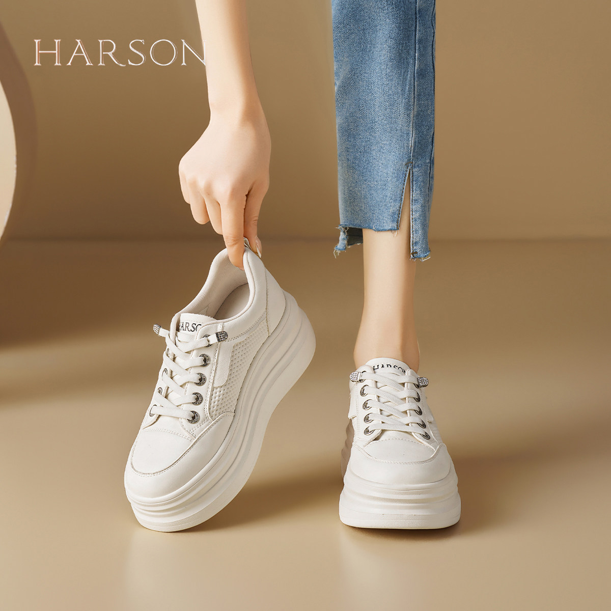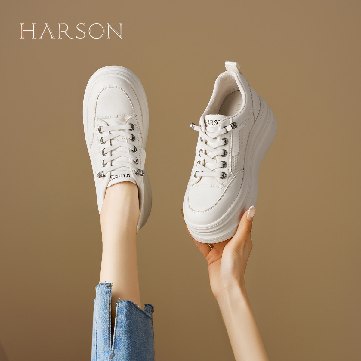 哈森头层牛皮厚底小白鞋女鞋子26春季新款增高休闲懒人一脚蹬板鞋