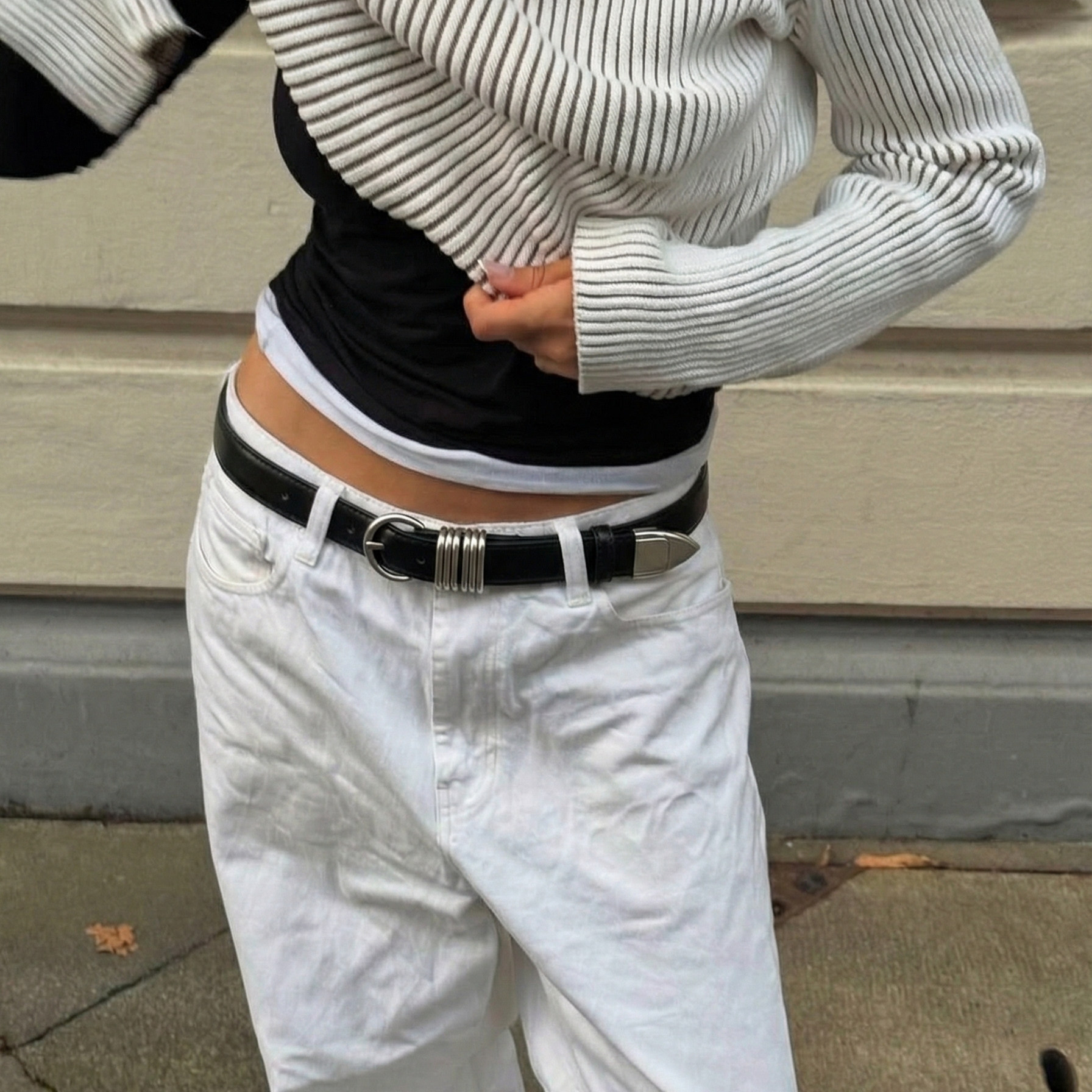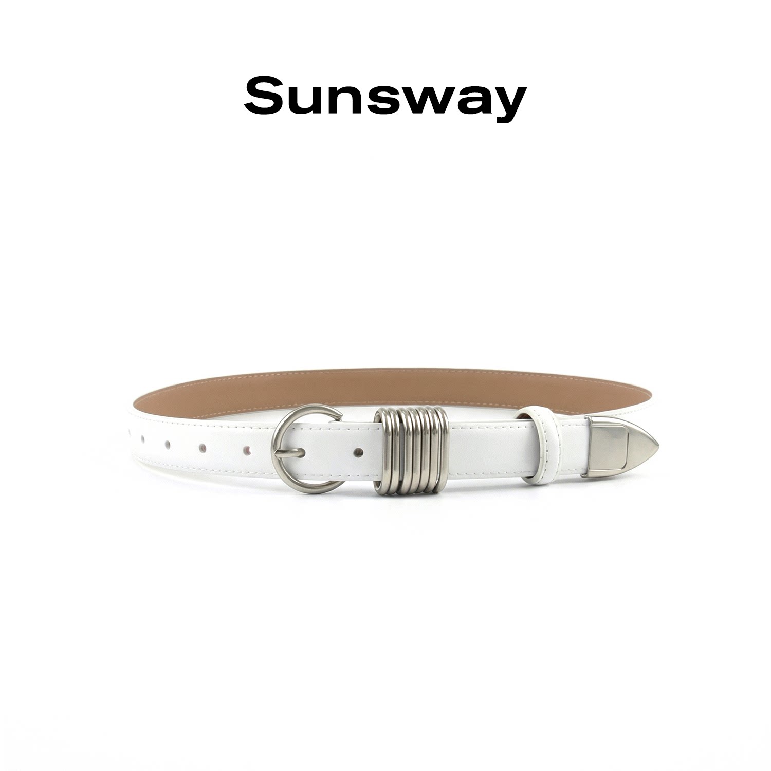 SUNSWAY金属圆环牛皮牛仔裤腰带男真皮简约个性黑色皮带女小众