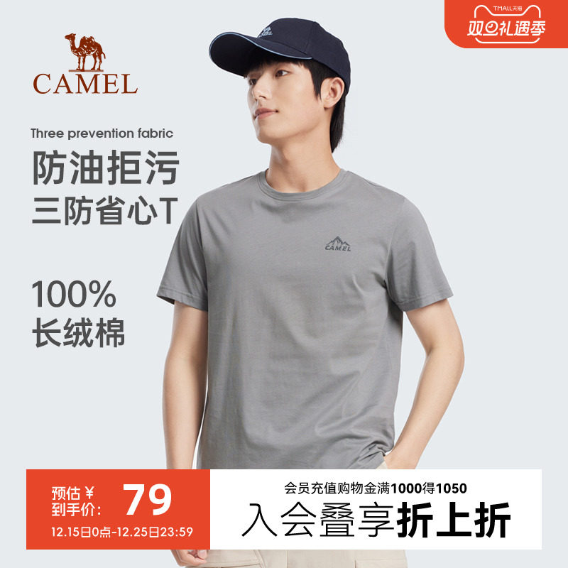 【三防纯棉T恤】骆驼男装防污T恤男户外2025圆领短袖夏季半袖体恤