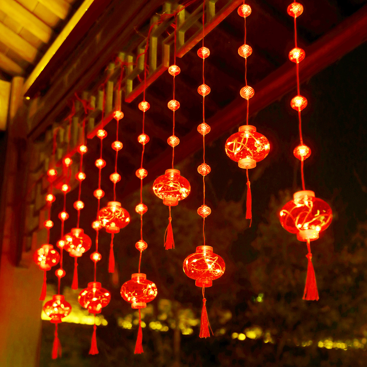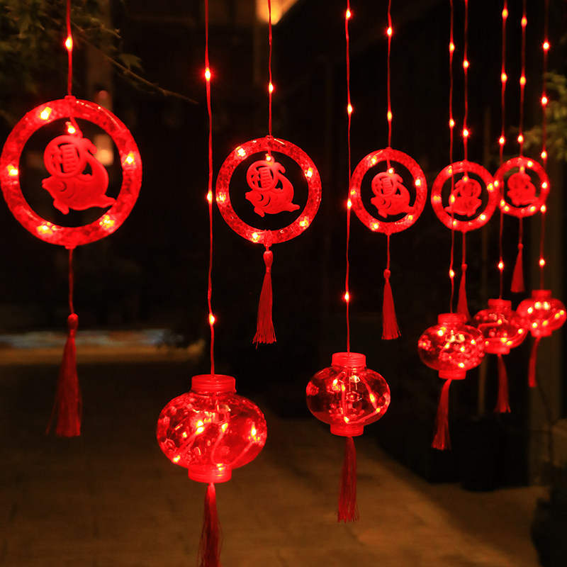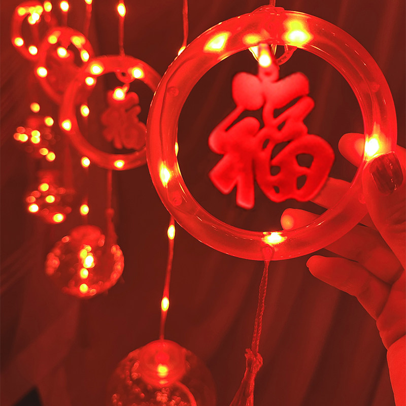 春节新年红灯笼窗帘灯节日布置家用过年装饰灯彩灯闪灯串灯满天星