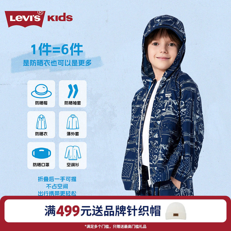 Levis儿童风衣皮肤衣2025夏季新款透气防晒男童上衣外套童装户外