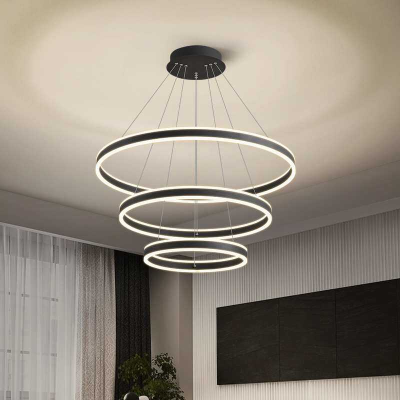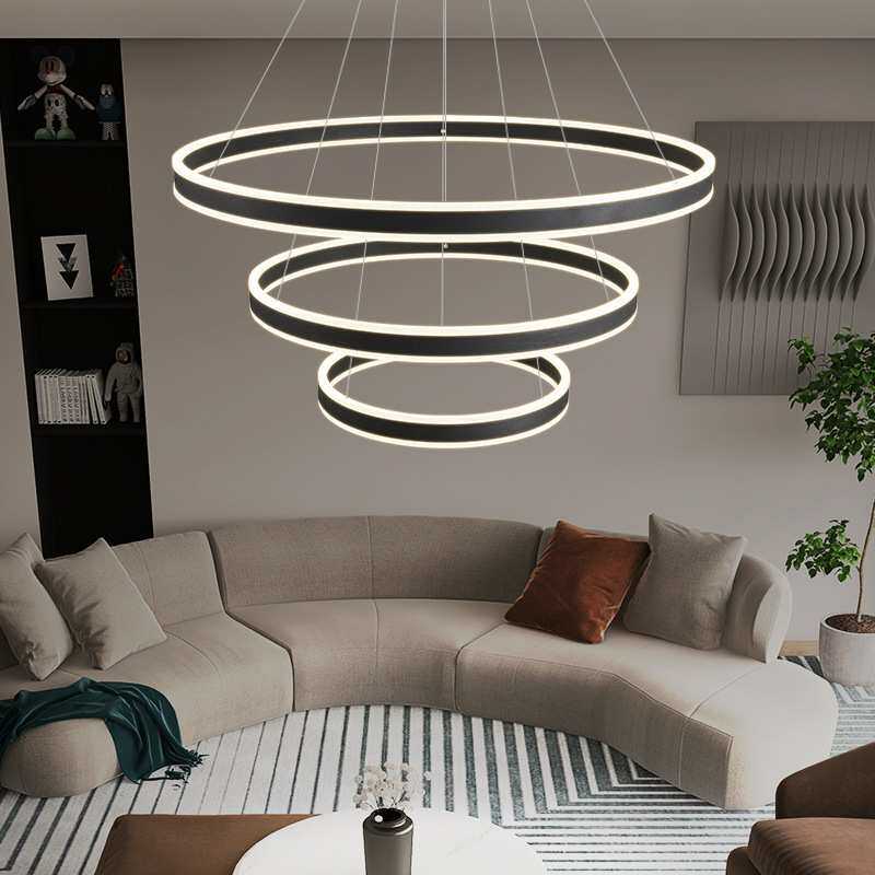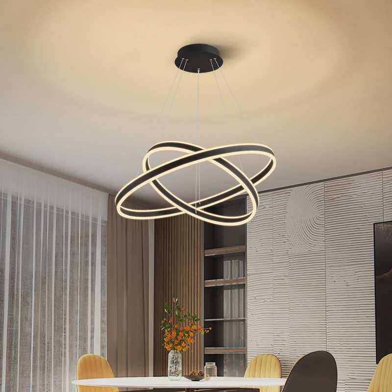 北欧简约现代led灯饰大厅客厅吊灯极简铝材圆环餐厅卧室中山l灯具