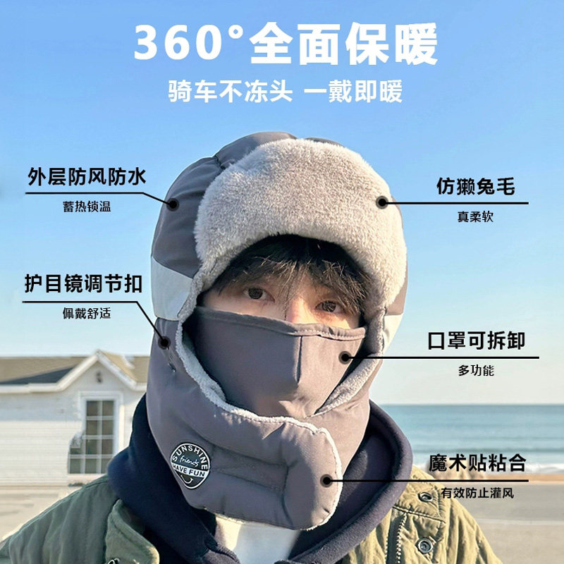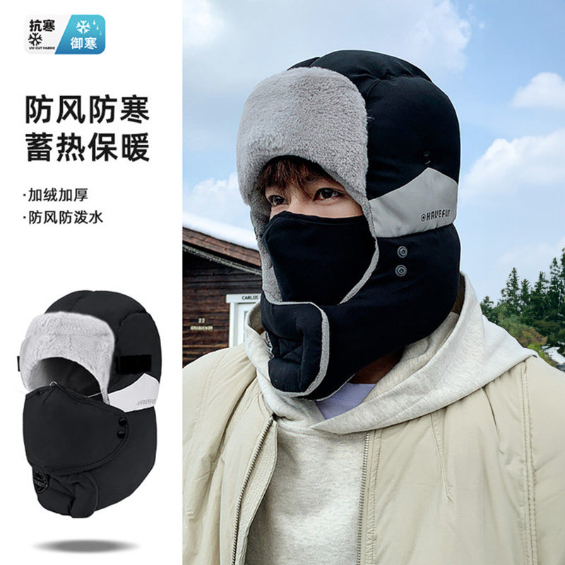 东北哈尔滨零下40度防寒保暖加绒加厚雷锋帽骑行装备防风冬季护耳