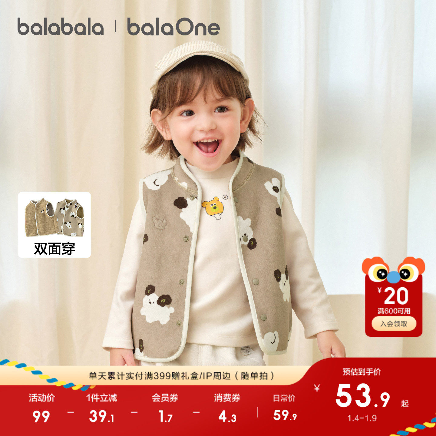 巴拉巴拉童装儿童马甲双面穿衣服男女宝宝秋冬装2025新款羊羔绒潮