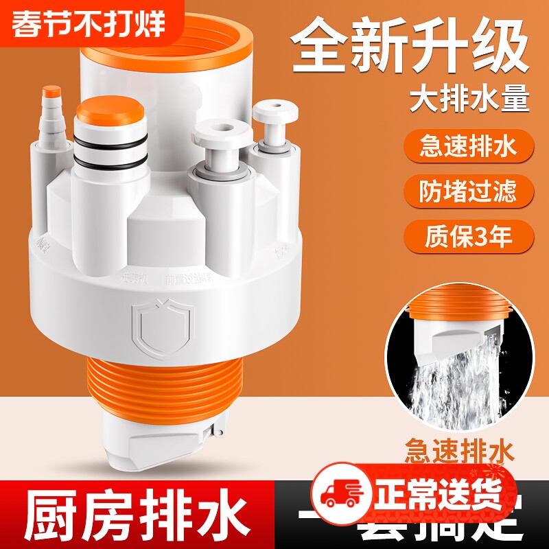 厨房下水管三头通洗碗机水槽排水管净水器密封塞下水器防返臭神器