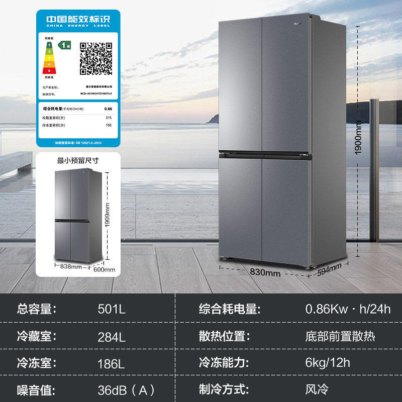 政府补贴海尔出品统帅悦己懒人510十字对开四门超薄一级家用冰箱