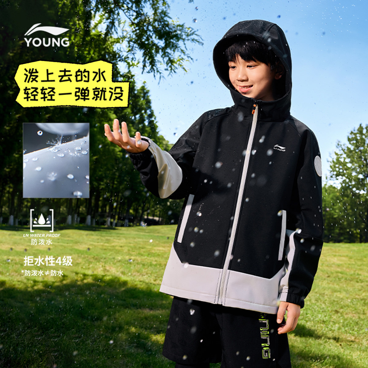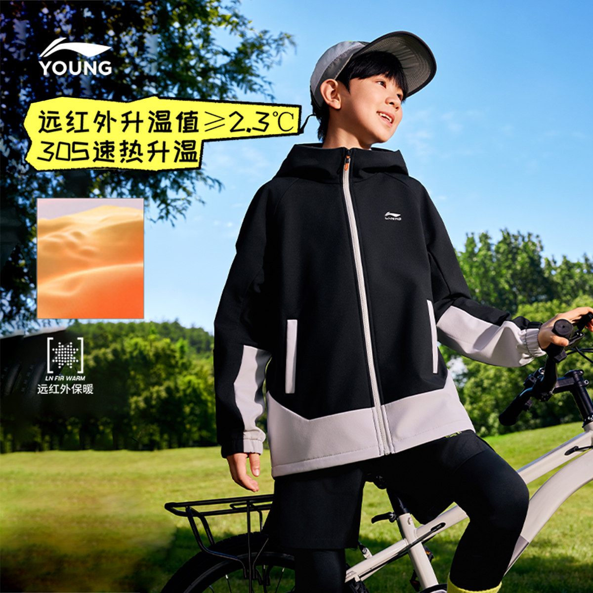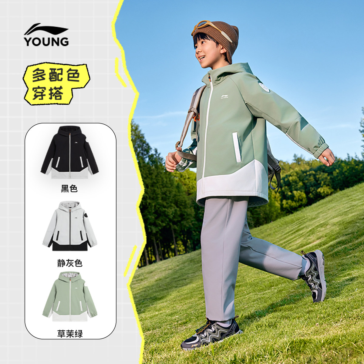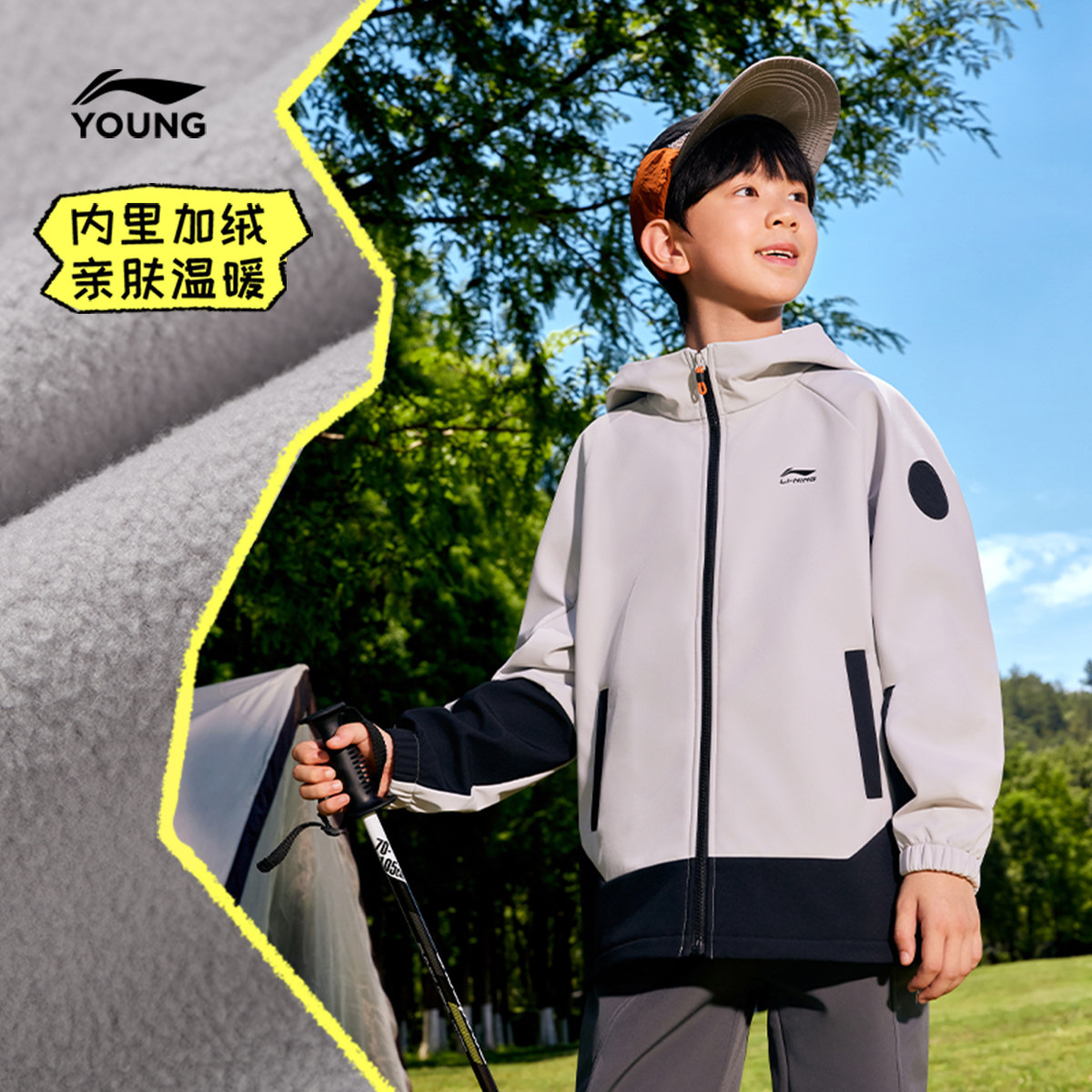 李宁童装风衣男款小大童潮流新款运动生活系列秋冬加绒保暖运动服