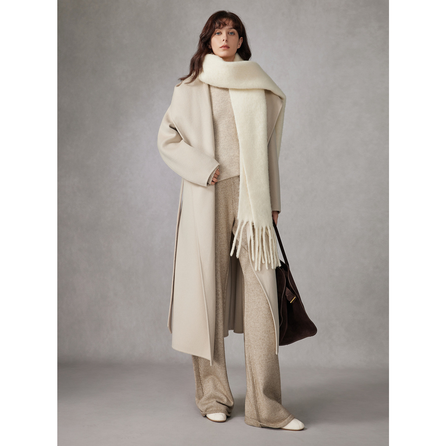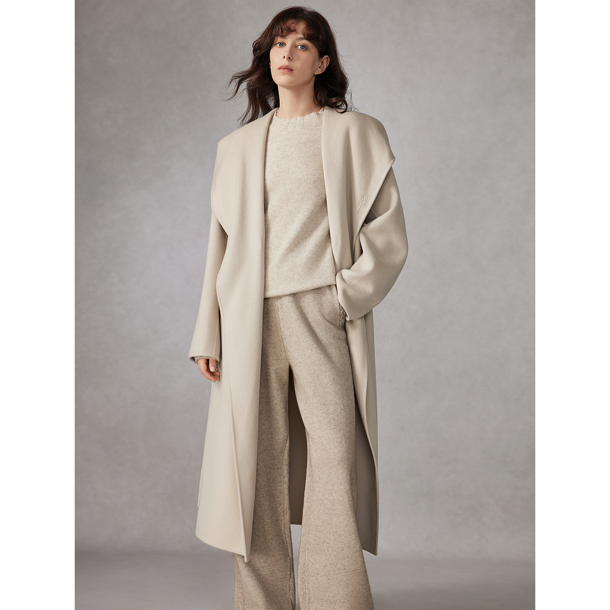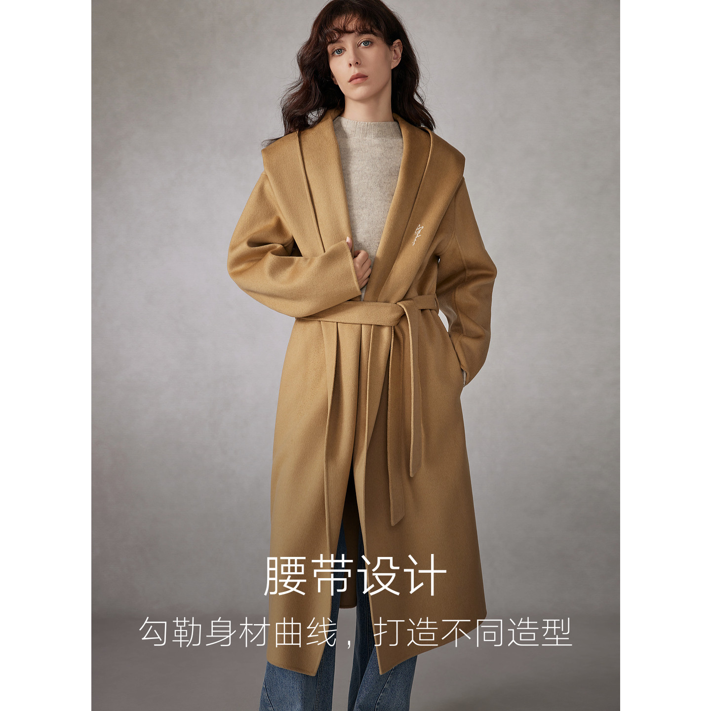 【山羊绒】ELLE绵羊毛系带长款双面呢大衣女2025冬季新款毛呢外套