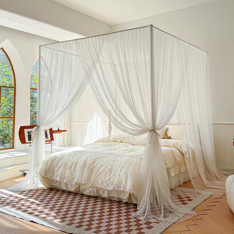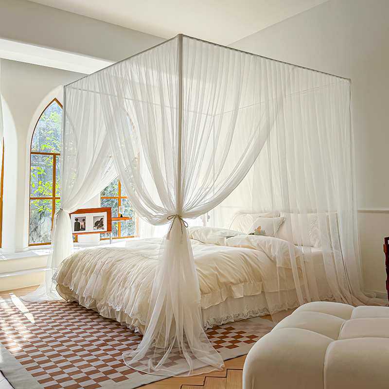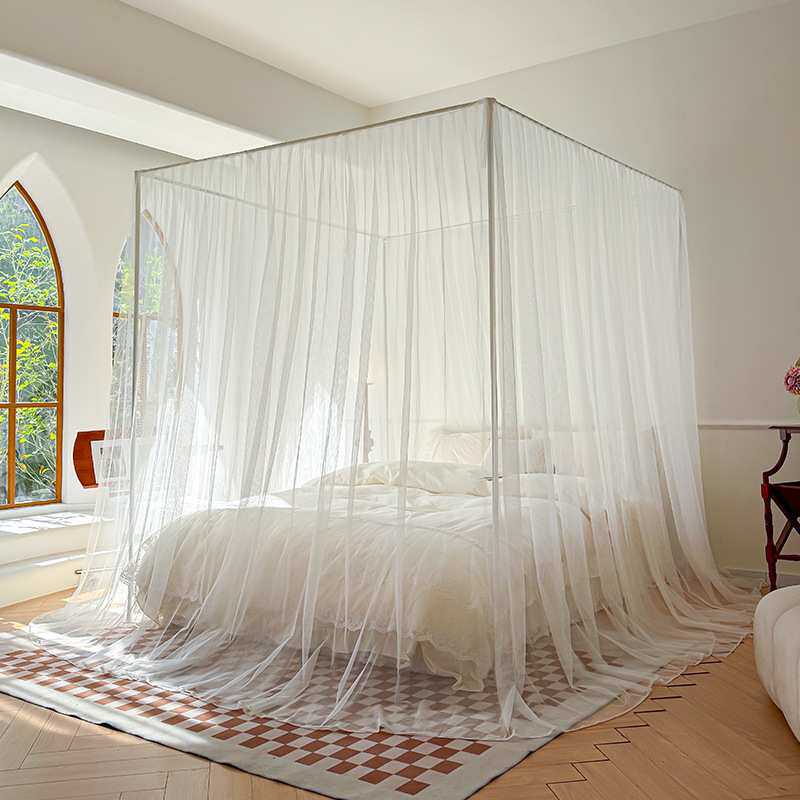 2024新款三开门家用落地蚊帐法式风纯白简约风加高卧室夏天文帐