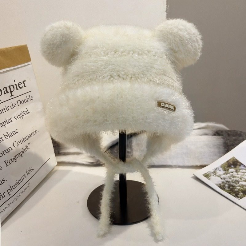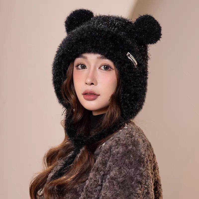 2025新款小熊帽子女士秋冬季保暖加厚防寒大头围显脸小针织毛线帽