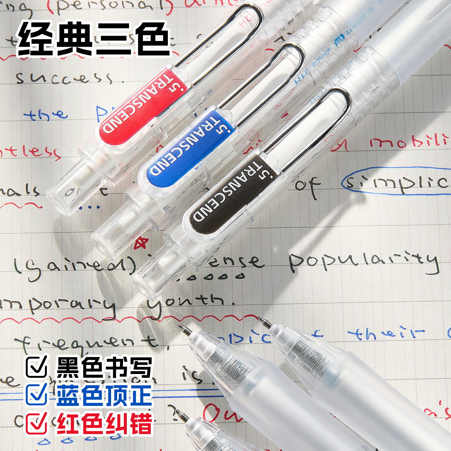 三年二班×东米3色刷题笔高颜值ins风黑红蓝中性笔速干顺滑开学必备文具用品大全初高中生专用水性圆珠笔K