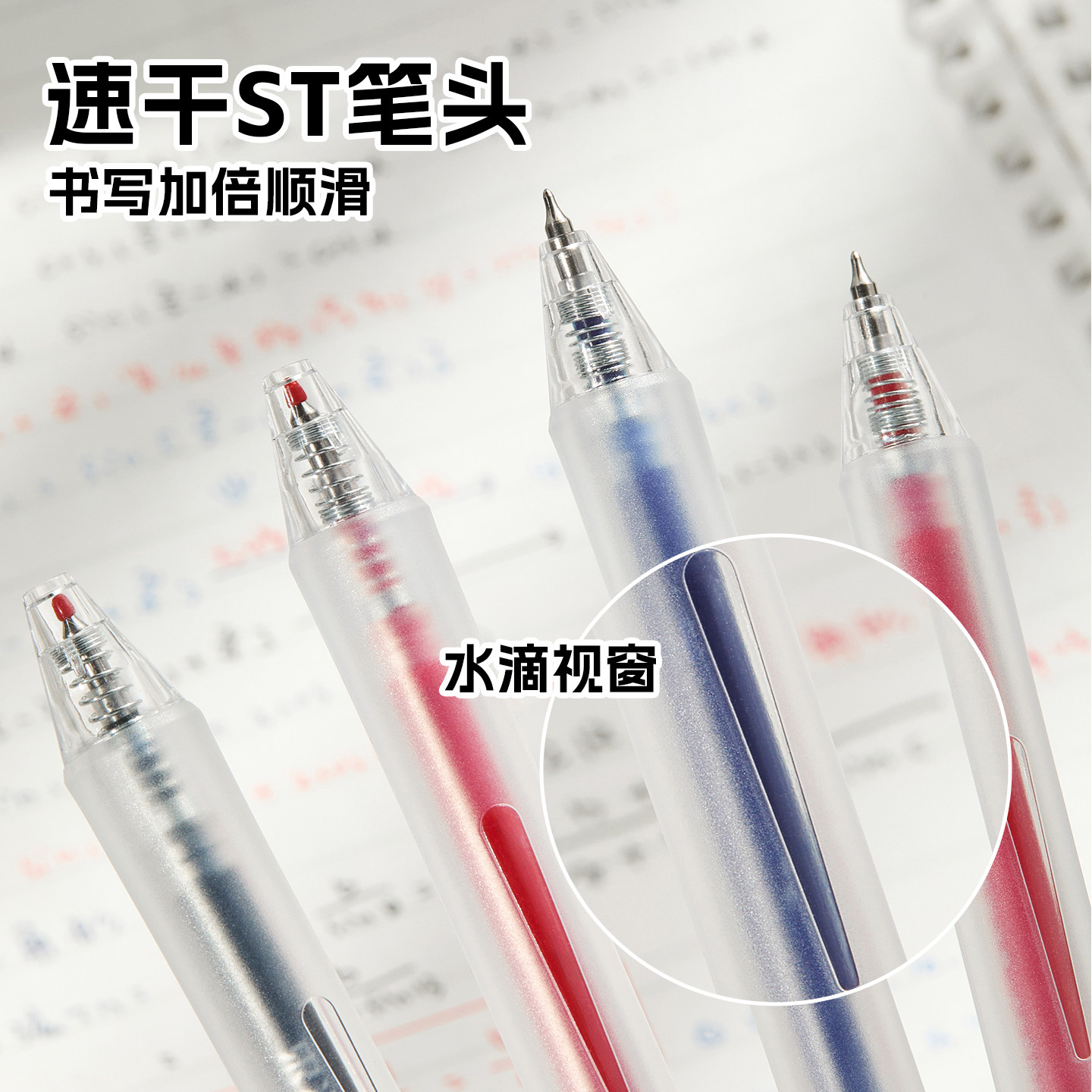 晨光中性笔按动式黑色水笔红色蓝色速干顺滑大容量学生用碳素笔