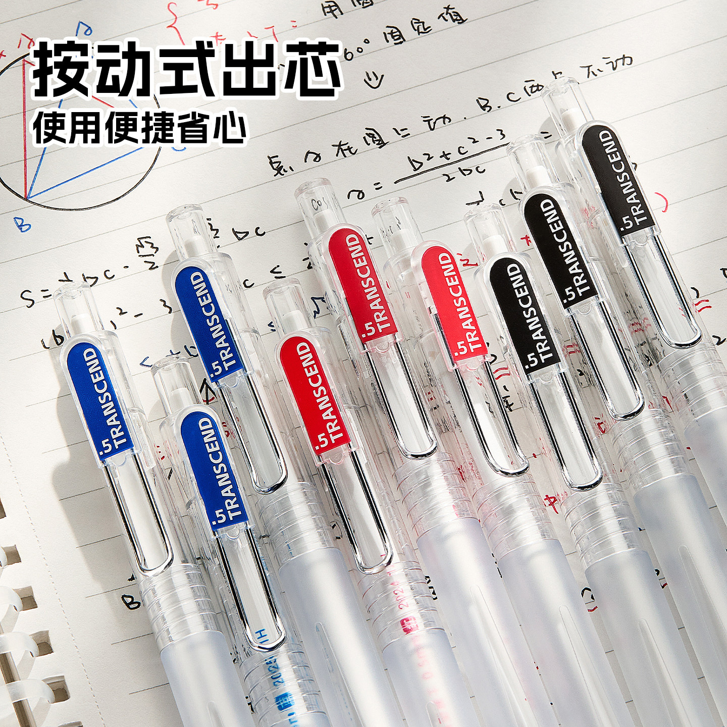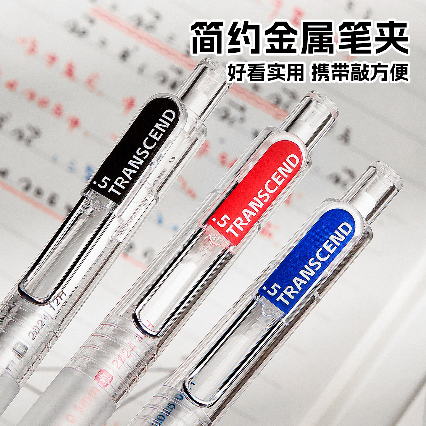 得力刷题笔速干st头透明考试笔考研考公学生用文具黑色0.5刷题备考专用笔中高考高颜中性笔碳素考按动式透明