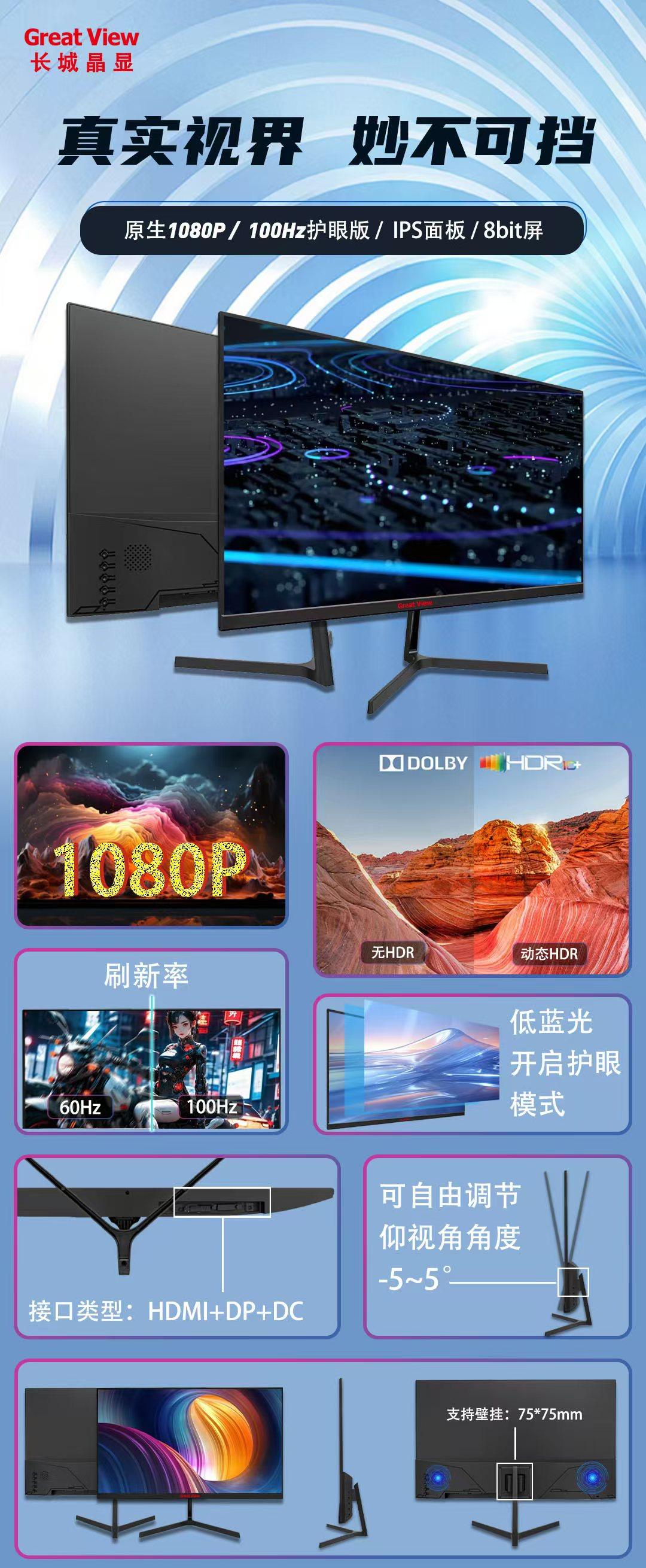 长城晶显 22寸 24寸 27寸液晶显示器ips电脑台式机显示屏100hz