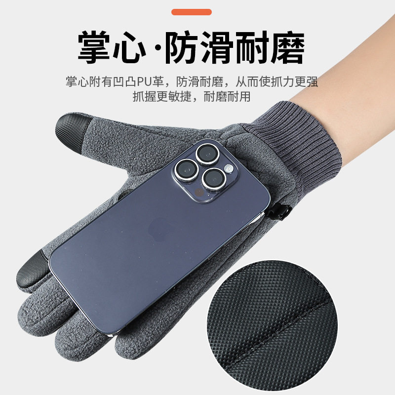 手套男冬季时尚防风加绒保暖触屏户外骑行开车摩托车半指防寒防水
