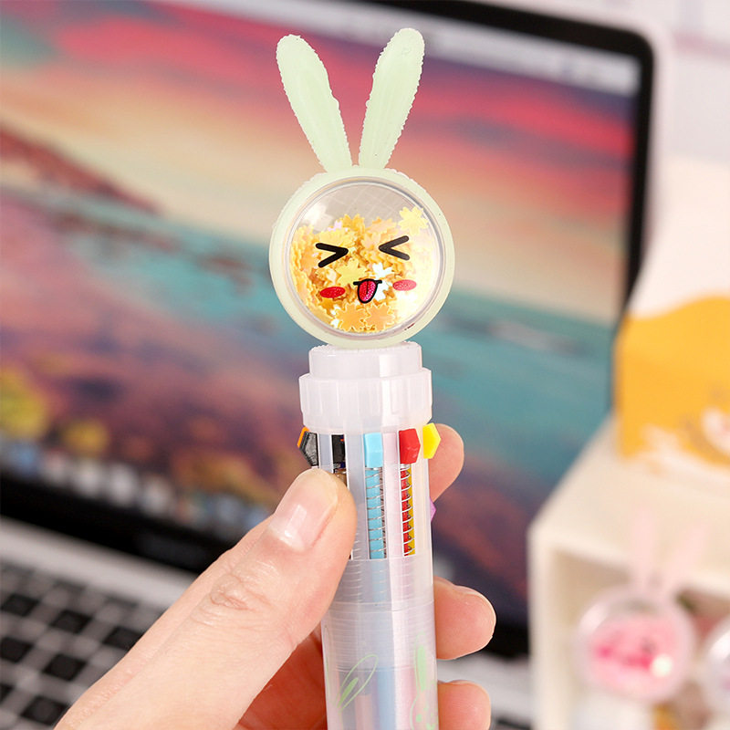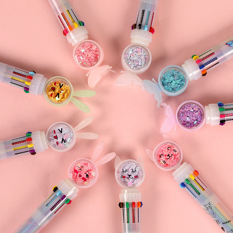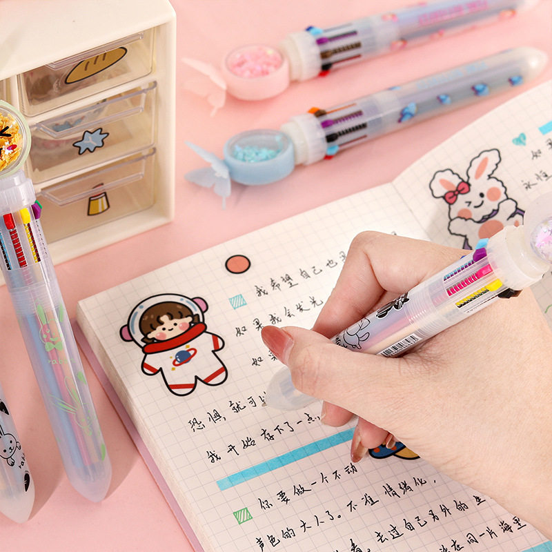 创意卡通多色签字笔可爱按压十色圆珠笔学生奖励实用礼品小奖品