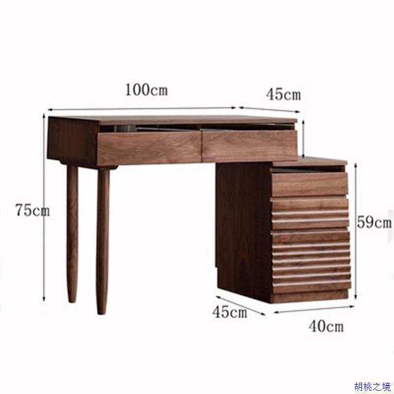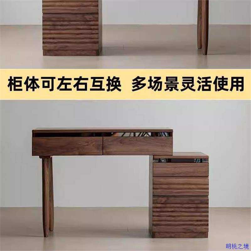 北欧全实木化妆桌原木小户型可伸缩床头柜黑胡桃木斗柜梳妆台一体